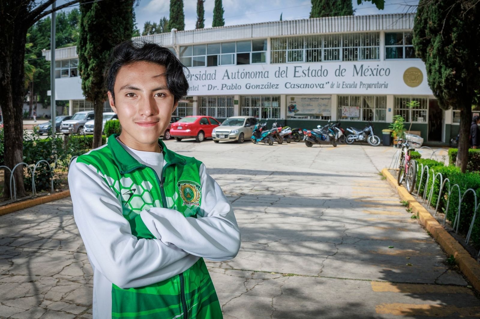 La encargada del despacho de la dirección del Plantel “Dr. Pablo González Casanova” de la Escuela Preparatoria de la UAEMéx, Janette Jaimes García, manifestó el apoyo total de la comunidad de este espacio académico y de la propia UAEMéx al esfuerzo de Roberto Naum Rosales Serrano.