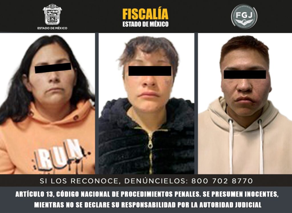La Fiscalía General de Justicia del Estado de México (FGJEM) obtuvo vinculación a proceso contra Arturo “N”, Selene “N” y Ariana “N”, quienes son investigados por su probable intervención en el delito de homicidio calificado en agravio de cuatro masculinos, quienes fueron privados de la vida el pasado 1 de junio, en la región oriente de la entidad.