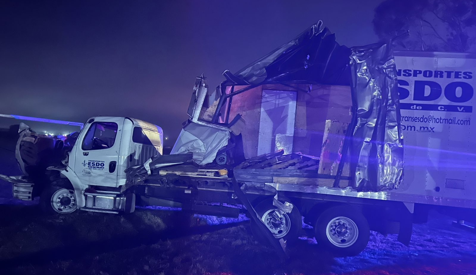 La unidad Freightliner de color blanco de la empresa ESDO se impactó violentamente en la estructura, luego de que el operador perdió el control la madrugada del miércoles en la carretera Toluca Zitácuaro, indicó una fuente.