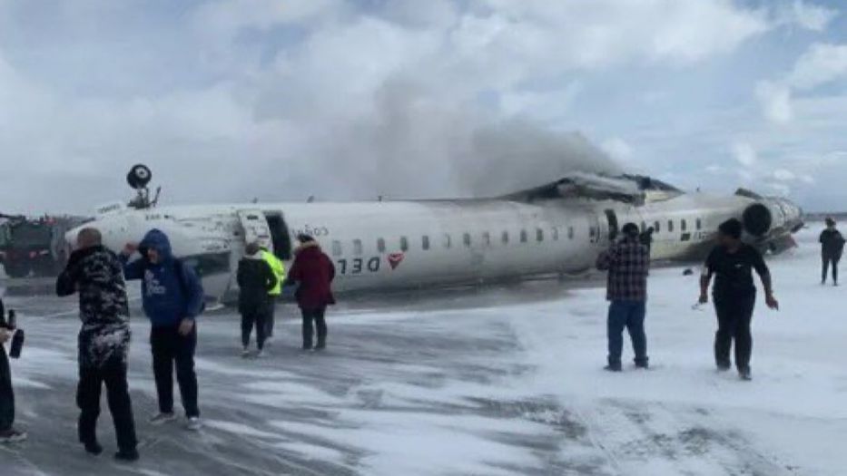 El avión, un CRJ-900, había partido del aeropuerto internacional de Minneapolis/St. Paul (Minnesota) y se volcó durante el aterrizaje en el aeropuerto canadiense, afectado por nieve y hielo de una tormenta.