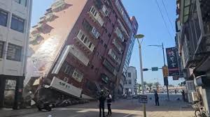 En la capital, Taipéi, cayeron baldosas de los edificios más antiguos y las escuelas evacuaron a sus alumnos a campos deportivos, equipándoles con cascos amarillos de seguridad. Algunos niños se cubrieron con libros de texto ante la posibilidad de objetos caídos mientras continuaban las réplicas. Más tarde, un edificio de cinco pisos en el condado Hualien, cerca del epicentro en el mar, quedó inclinado en un ángulo de 45 grados sobre su primer piso derruido.