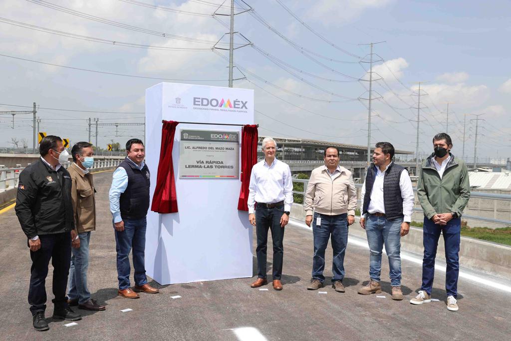 El Gobernador Alfredo Del Mazo Maza puso en marcha la Vía Rápida Lerma – Las Torres que, al conectarse con la autopista México-Toluca, fortalecerá una de las principales rutas comerciales entre el Valle de Toluca y la capital del país.