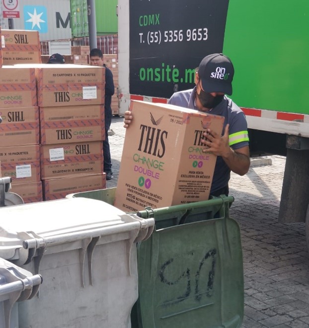 Los desperdicios fueron depositados en un relleno sanitario a través del apoyo de personal de la Industria Tabacalera. Dichos cigarros pretendían ser ingresados y comercializados de manera ilegal en México y son parte de los casi 50 millones de cigarros asegurados en las 50 aduanas del país, que representan en su totalidad una evasión fiscal de 350 millones de pesos.