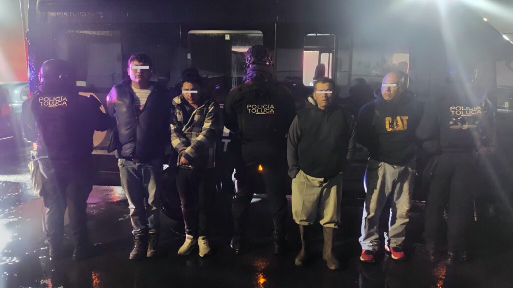 Policías municipales de Toluca detuvieron a cuatro hombres que presuntamente realizaban disparos al aire en la delegación de Tecaxic, tras reportes vecinales por detonaciones de arma de fuego.