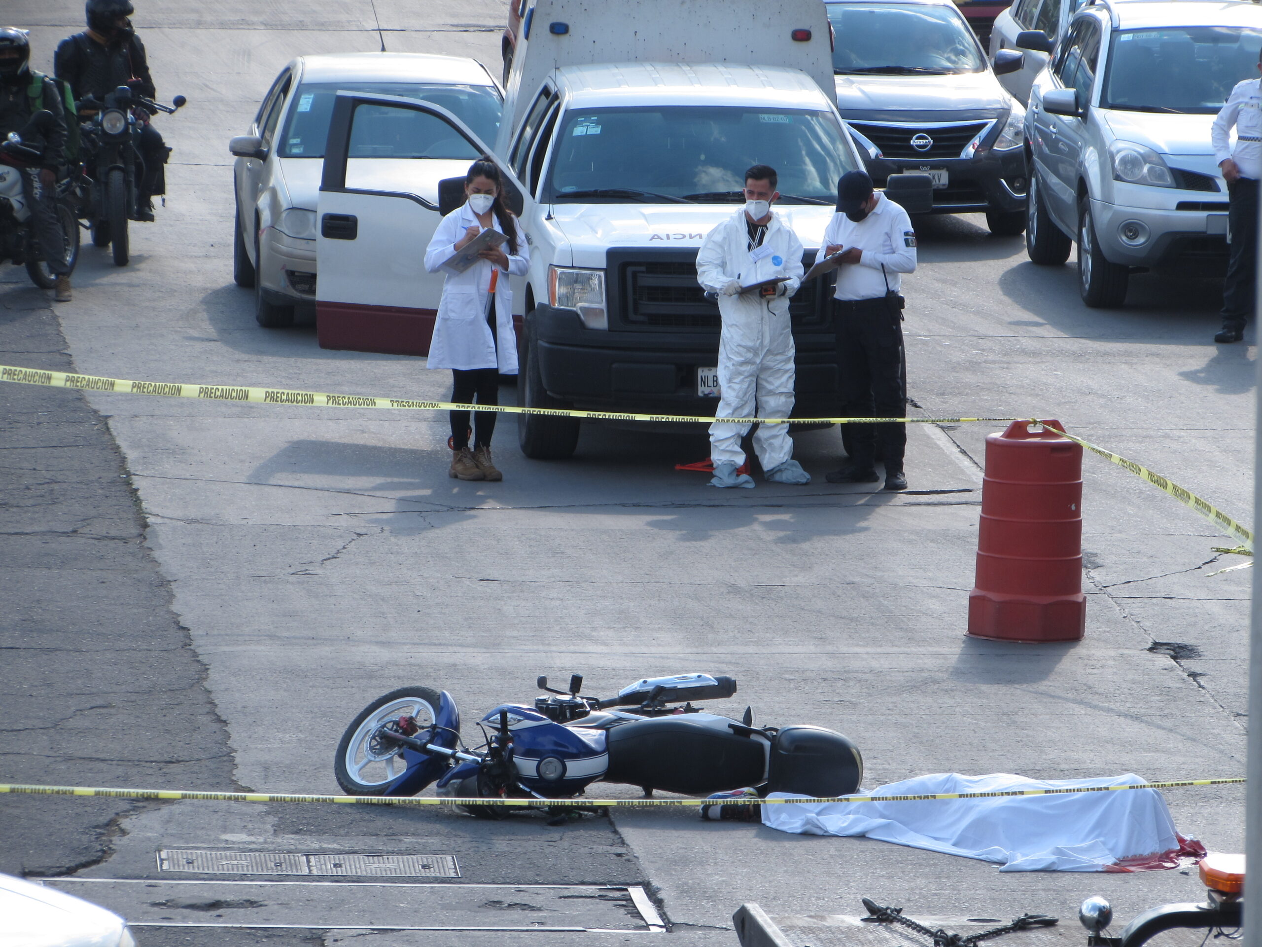 Sigue desconsolada, mientras familiares tratan de calmarla, busca acercarse al cuerpo; sin embargo, policías impiden que pueda hacerlo, ni el casco que llevaba la víctima le pudo salvar la vida, la tarde del martes.
