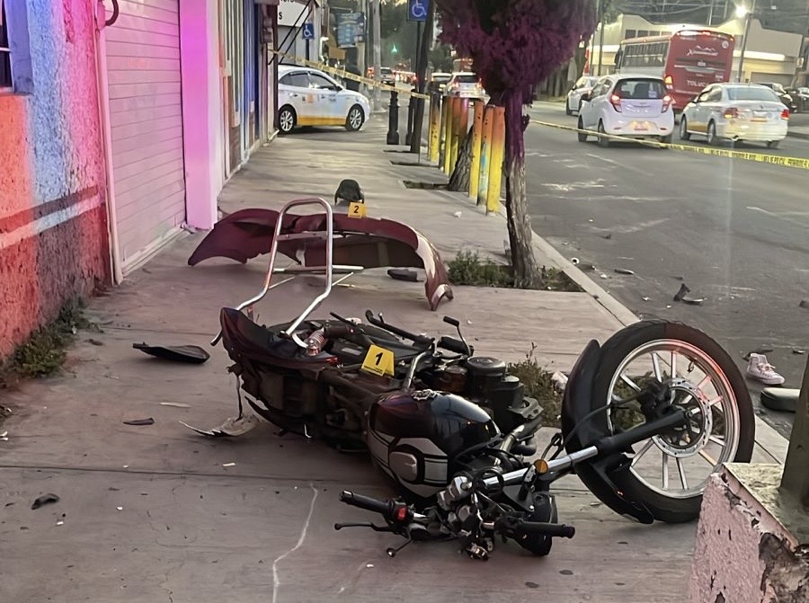 El hombre y la mujer circulaban a bordo de una unidad Italika color negro que terminó sobre la banqueta en el cruce de la avenida Pino Suárez con Morelos, la madrugada del viernes, después de la colisión antes de las 4 horas.