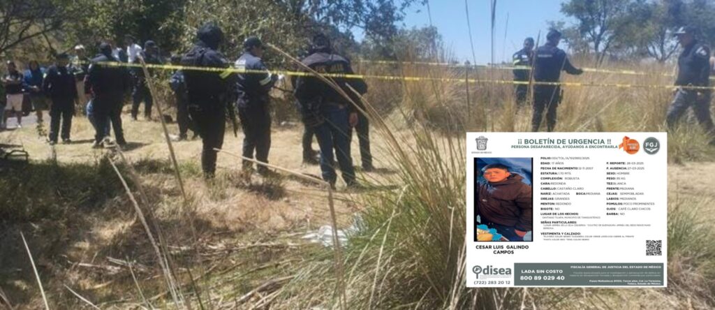 Luego de haber sido reportado como desaparecido, César Luis fue encontrado sin vida y con disparos de arma de fuego en un terreno baldío de la comunidad de Santa Cruz de Bravo en el municipio de Santiago Tianguistenco.