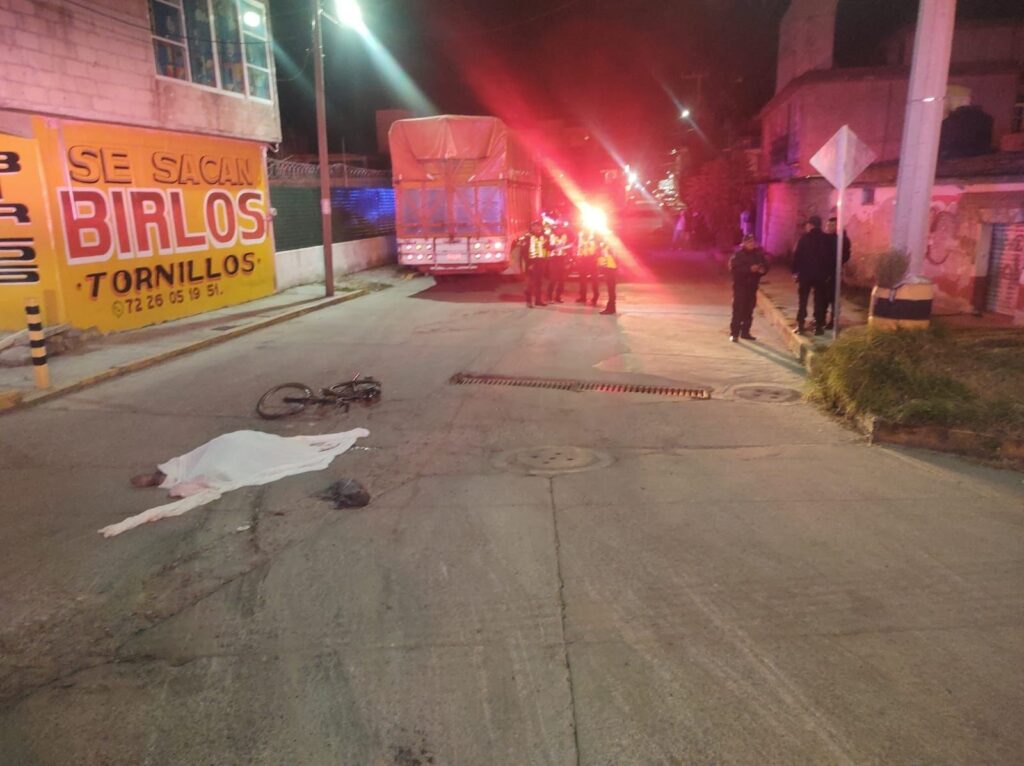 Un ciclista que regresaba a a su casa pero no pudo ser identificado, falleció después de ser atropellado por el conductor de un camión de carga que se dio a la fuga en la colonia San Antonio en el municipio de Xonacatlán.
