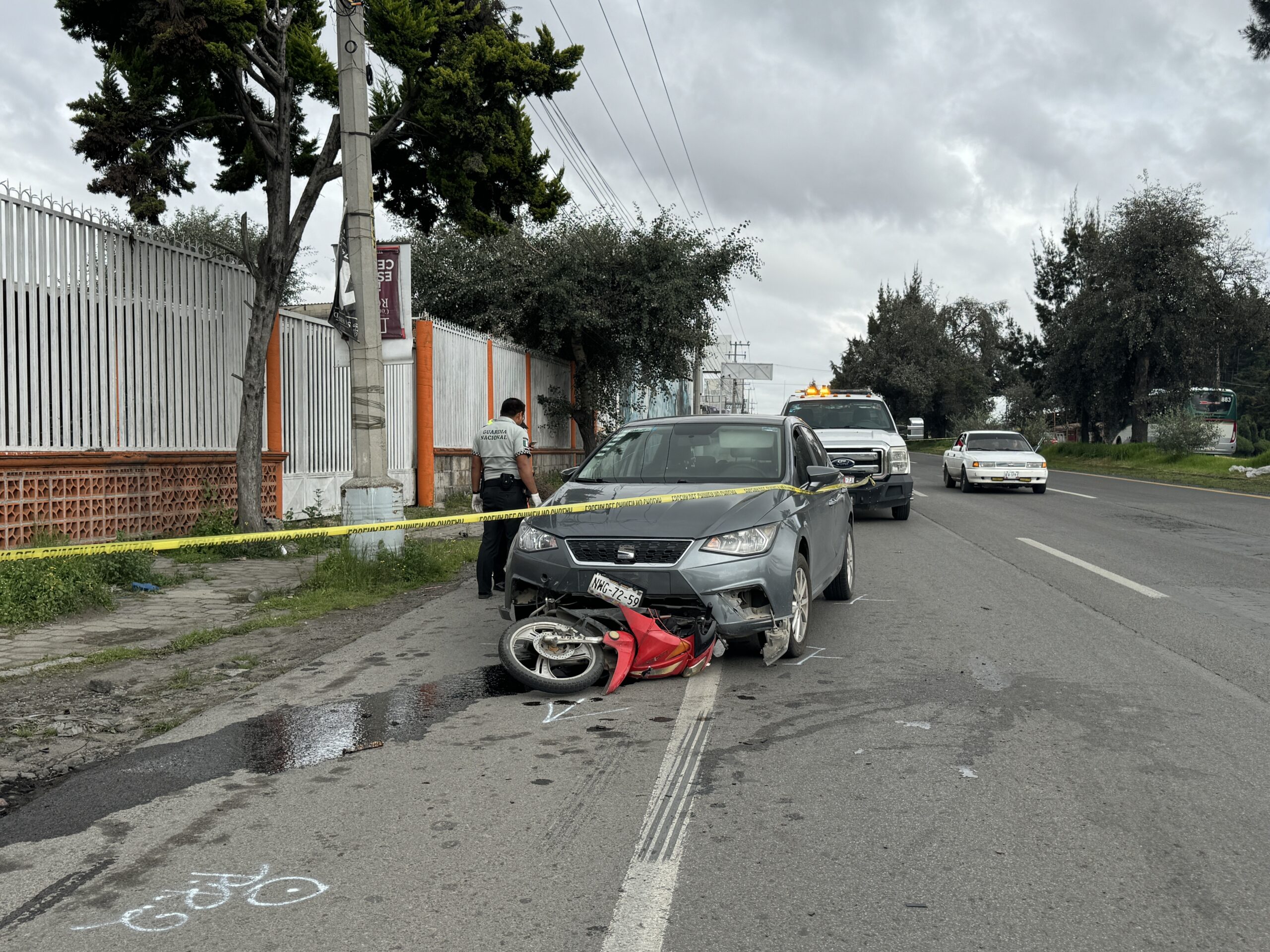 Personal de la Guardia Nacional junto con policías municipales tuvieron que colocar un acordonamiento junto al cuerpo, ademas, abanderar la circulación que estuvo afectada por casi 4 horas con dirección a Mexicaltzingo.