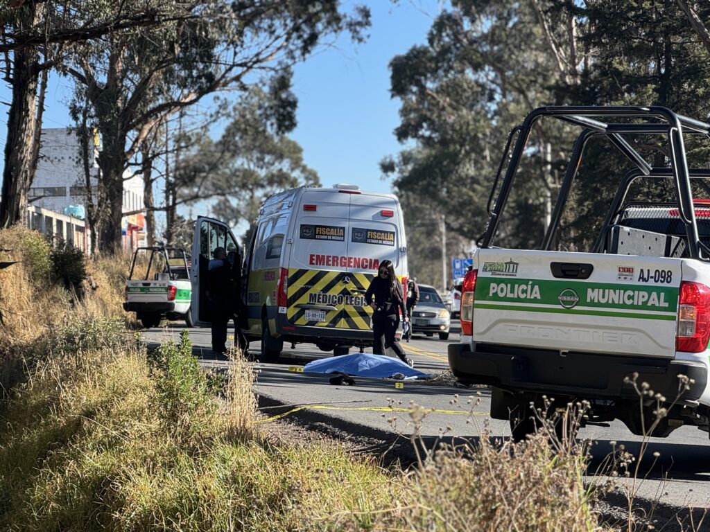 Con el rostro desfigurado, una mujer que no pudo ser identificada terminó sin vida luego de ser atropellada por el conductor de un vehículo que siguió su marcha en el poblado de San Miguel Almoloyan en Almoloya de Juárez.