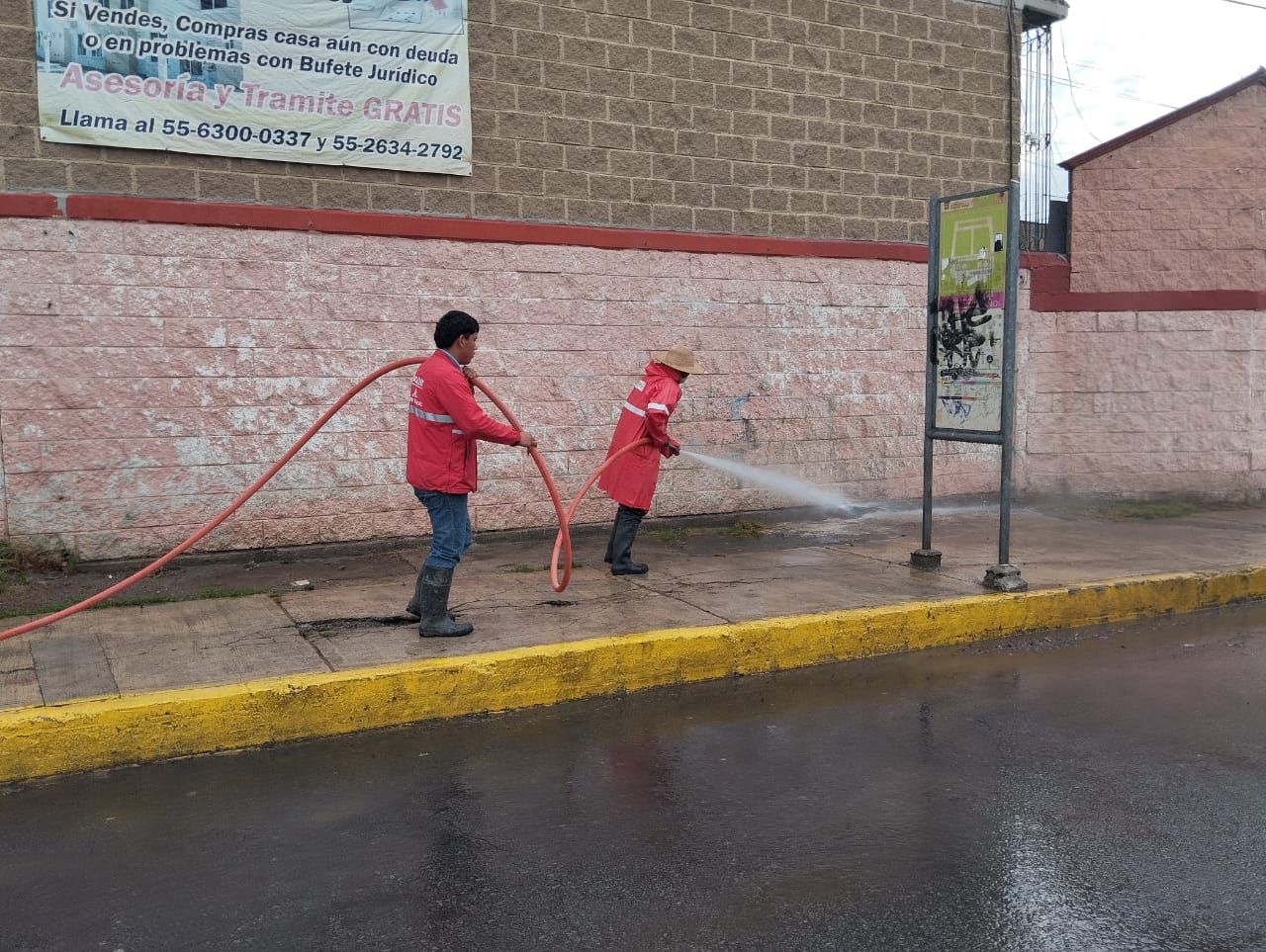 Para estos trabajos se desplazó un minicargador y un camión tipo volteo; mientras que el Odapas de Chalco colabora con una retroexcavadora. Además, se ejecutan labores de limpieza y lavado de la vialidad principal, así como el retiro de lodo, con el apoyo de dos equipos hidroneumáticos, dos camiones de 3.5 toneladas y 17 elementos adicionales.