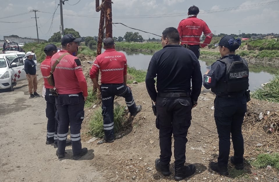 A pie del río, entre maleza y agua, familiares de Juan Guadalupe recorren cada rincón con la esperanza de encontrarlo, después de caer al afluente, mientras trabajaba en el techo de su vivienda en Jicaltepec en Toluca.