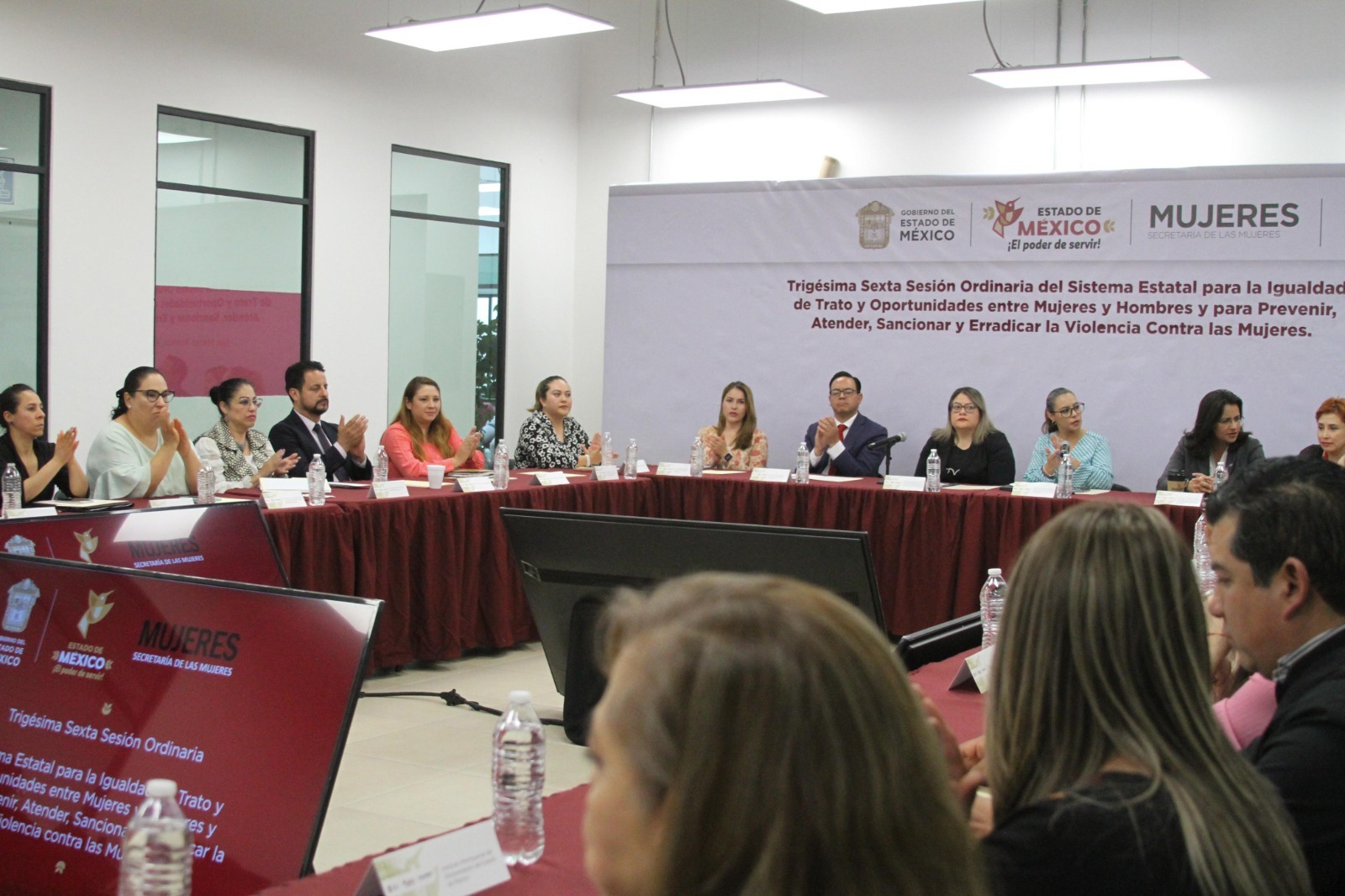 La Trigésima Sexta Sesión Ordinaria que se llevó a cabo en Ciudad Mujeres de San Mateo Atenco, contó con la participación de Paola Jiménez Hernández, diputada presidenta de la Comisión para la Igualdad de Género de la LXI Legislatura del Estado de México; y representantes de dependencias del Ejecutivo Estatal, organismos auxiliares, organismos autónomos, Poder Judicial, instituciones de investigación especializada en género y organizaciones civiles especializadas en derechos humanos de las mujeres.