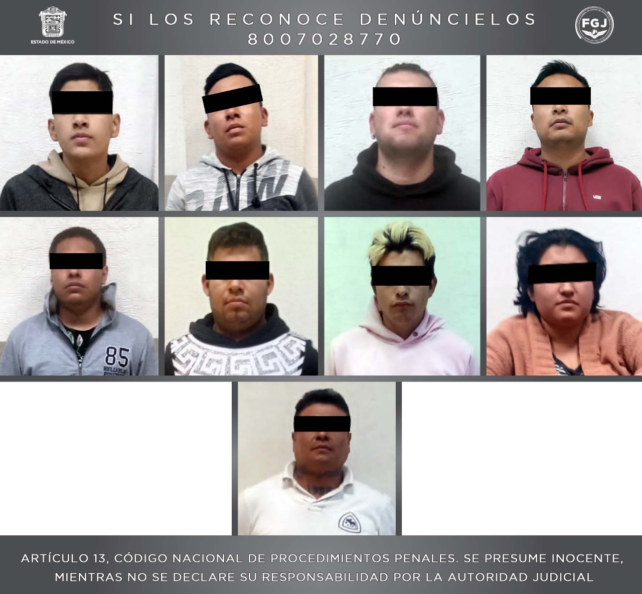 Las personas detenidas fueron presentadas ante el Agente del Ministerio Público, quien habrá de determinar su situación legal, sin embargo, se les debe considerar inocentes hasta que sea dictada una sentencia condenatoria en su contra.