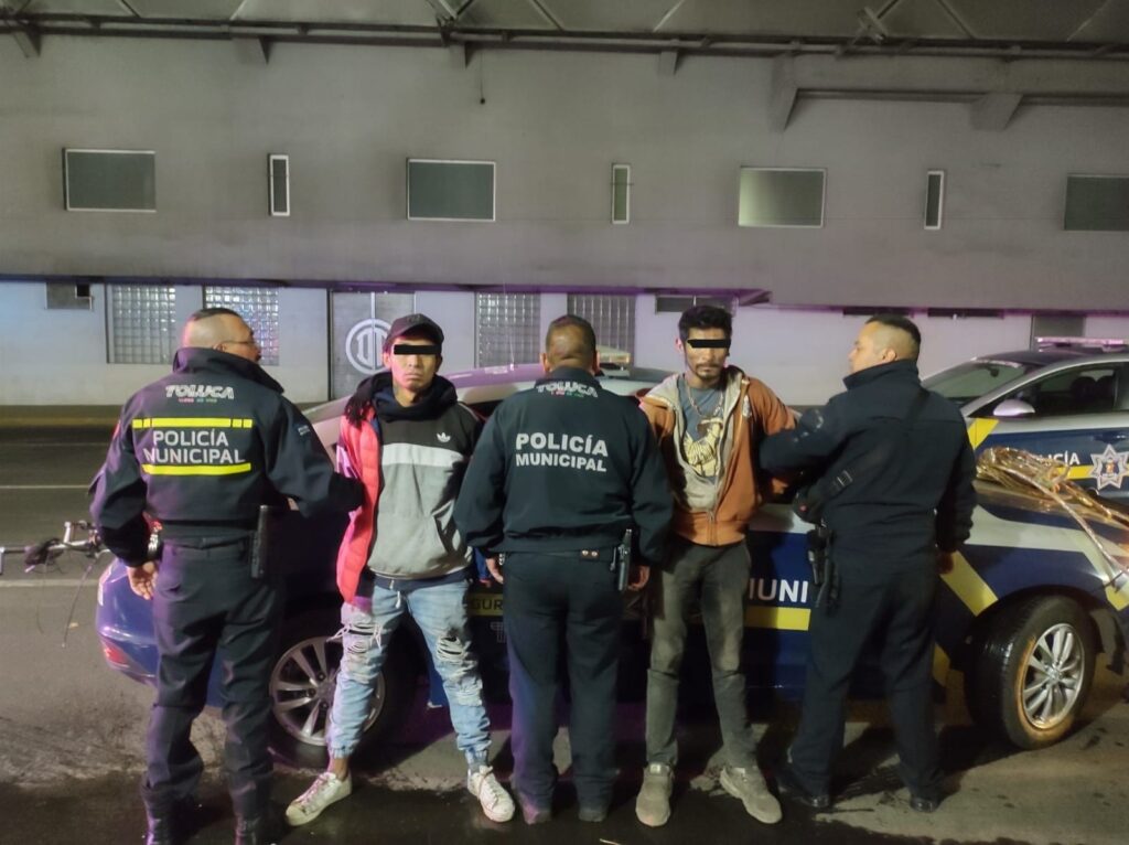 Por otro lado, en avenida Pino Suárez, delegación Santa María de las Rosas, Arturo “N” de 32 años y Jesús Alberto “N” de 30 años fueron detenidos por portación de armas de fuego de uso exclusivo. Los sujetos, además, amenazaron a los uniformados al momento de su arresto, por lo que fueron puestos a disposición de la Fiscalía General de Justicia del Estado de México.