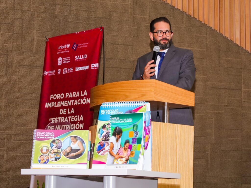 El Oficial Nacional de Salud y Nutrición de UNICEF México, Matthias Sachse Aguilera, destacó que el Estado de México es la primera entidad en diseñar material y convocar a los profesionales en la materia de todas las instituciones con representación estatal.