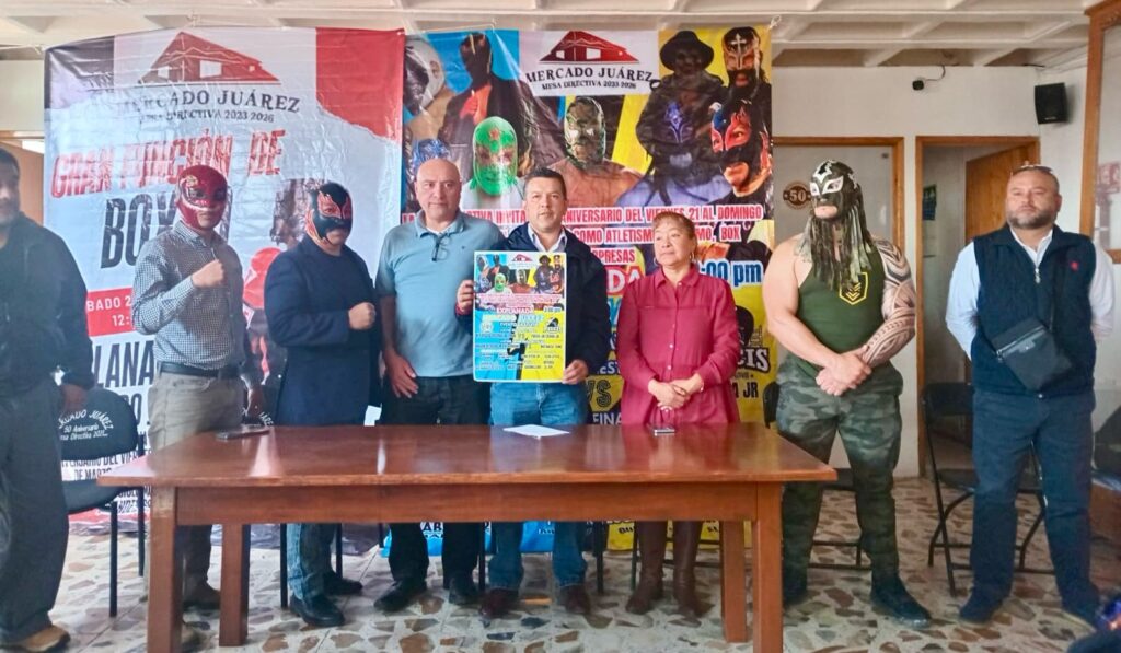 Juan Carlos Torres Garduño, secretario general de la mesa directiva de la administración, acompañado por miembros de la Liga de Luchadores Profesionales de Toluca (LLPT), dio a conocer el programa de eventos que se llevarán a cabo con motivo de la celebración de su 53° aniversario.