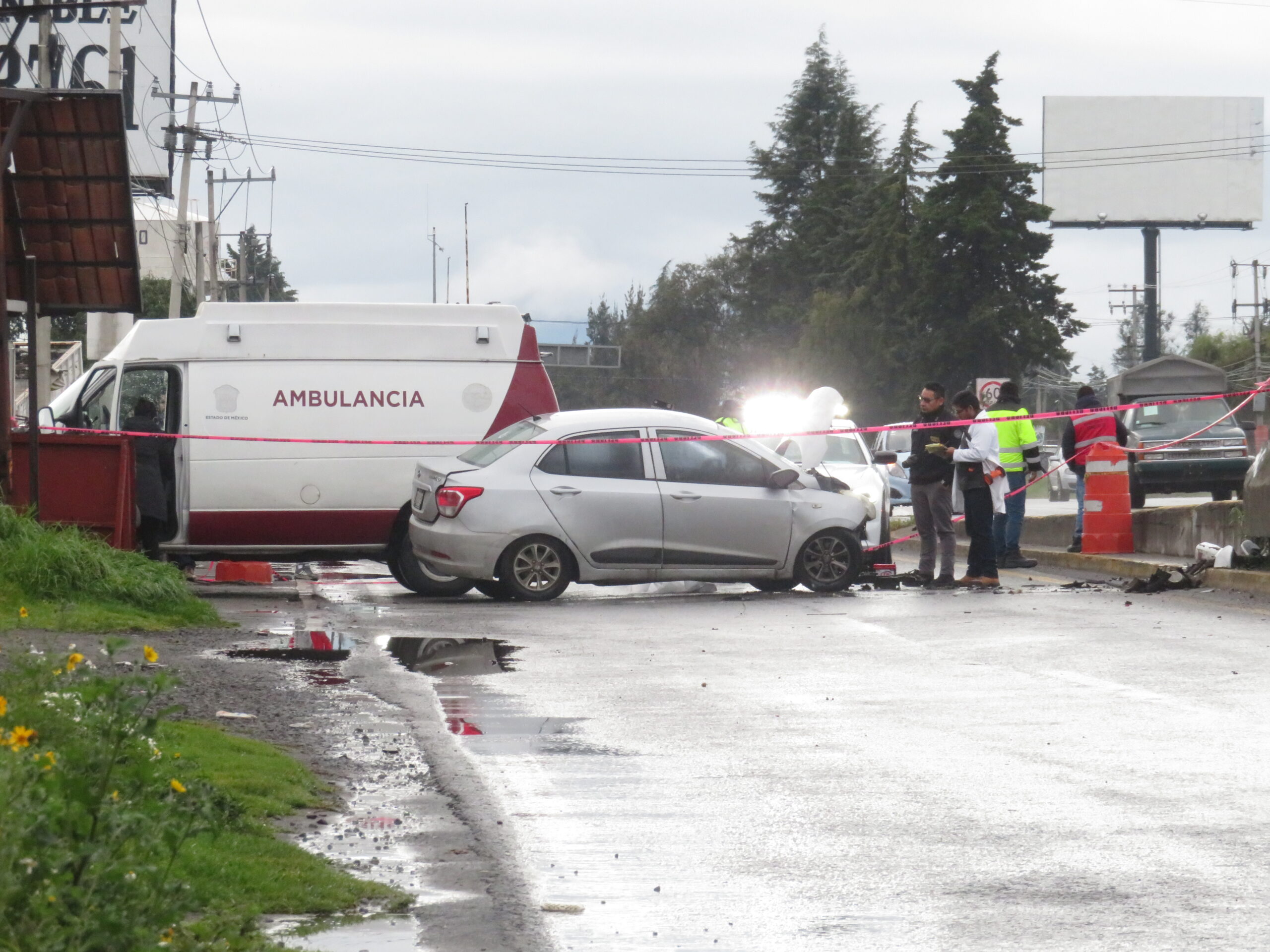 El accidente se registró sobre la carretera Toluca Tenango del Valle al momento que el operador de un automóvil Hyundai de color gris chocó violentamente con la base de concreto, la madrugada del domingo, indicó una fuente.