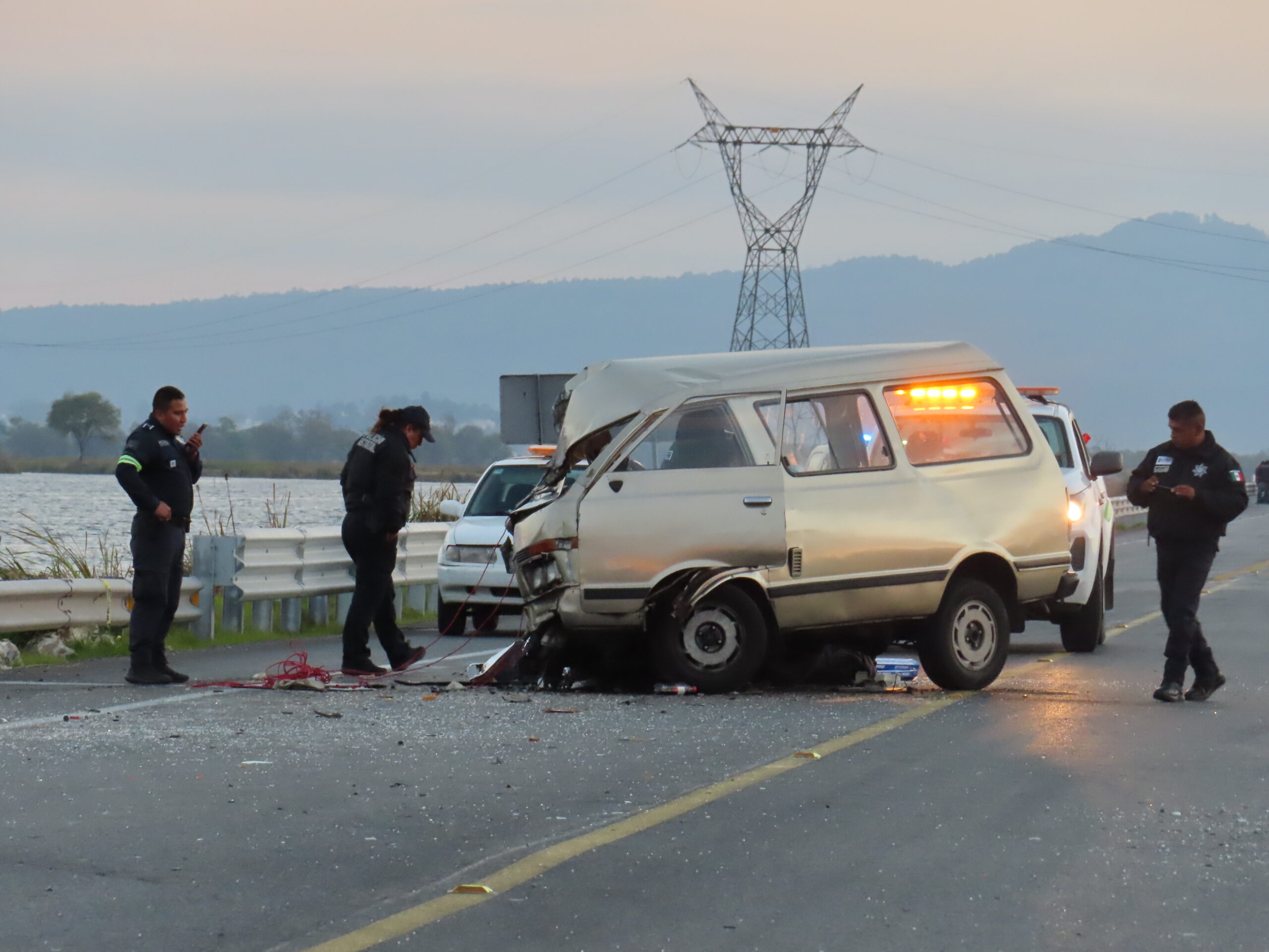 En la colisión participaron unidades Nissan una NP300 color gris e Ichi Van, ambas quedaron destrozadas de la parte delantera por el golpe sobre la autopista Lerma Tres Marías, minutos antes de las 17:00 horas del martes.
