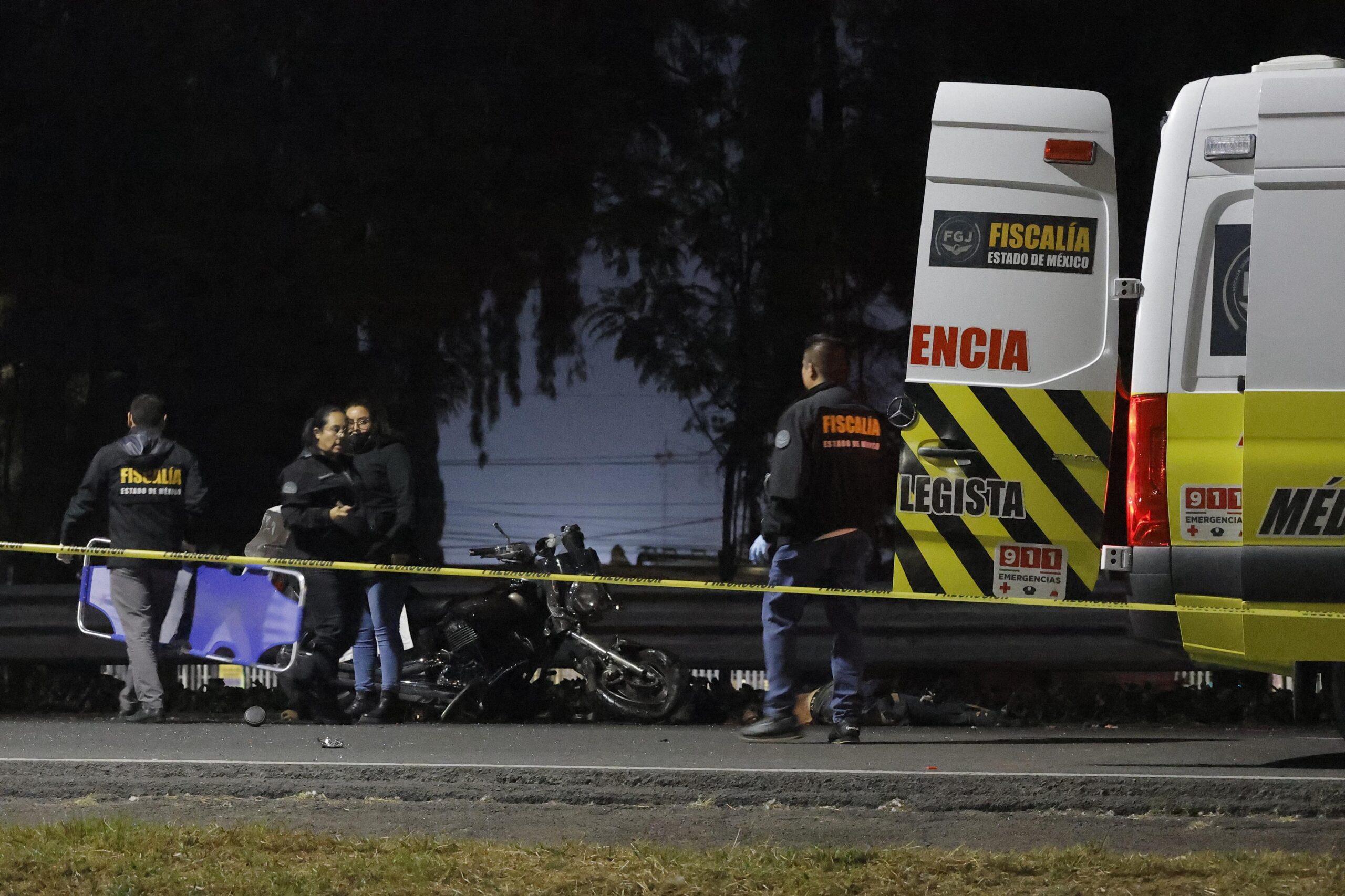 «Todo empezó allá atrás y acabó hasta acá», dice un policía; mientras observa a los peritos trabajar para fijar la escena en la que se encuentran tres hombres sin vida, después de un accidente múltiple en Toluca.
