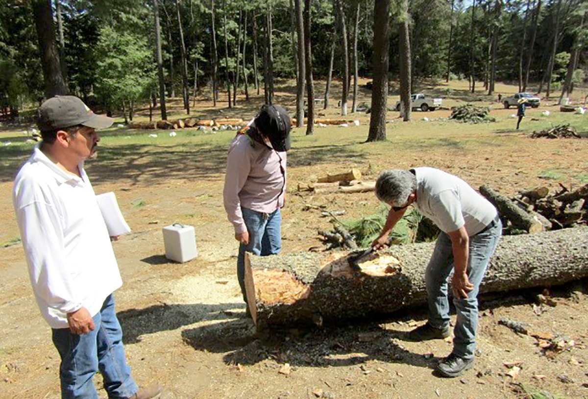 Apegados a la norma NOM-019-SEMARNAT-1999, que establece los lineamientos técnicos para el combate y control de los insectos descortezadores, de las coníferas, se estableció un método de saneamiento químico mecánico que consiste en el derribo, troceo, descortezado y la aplicación de un insecticida de contacto.