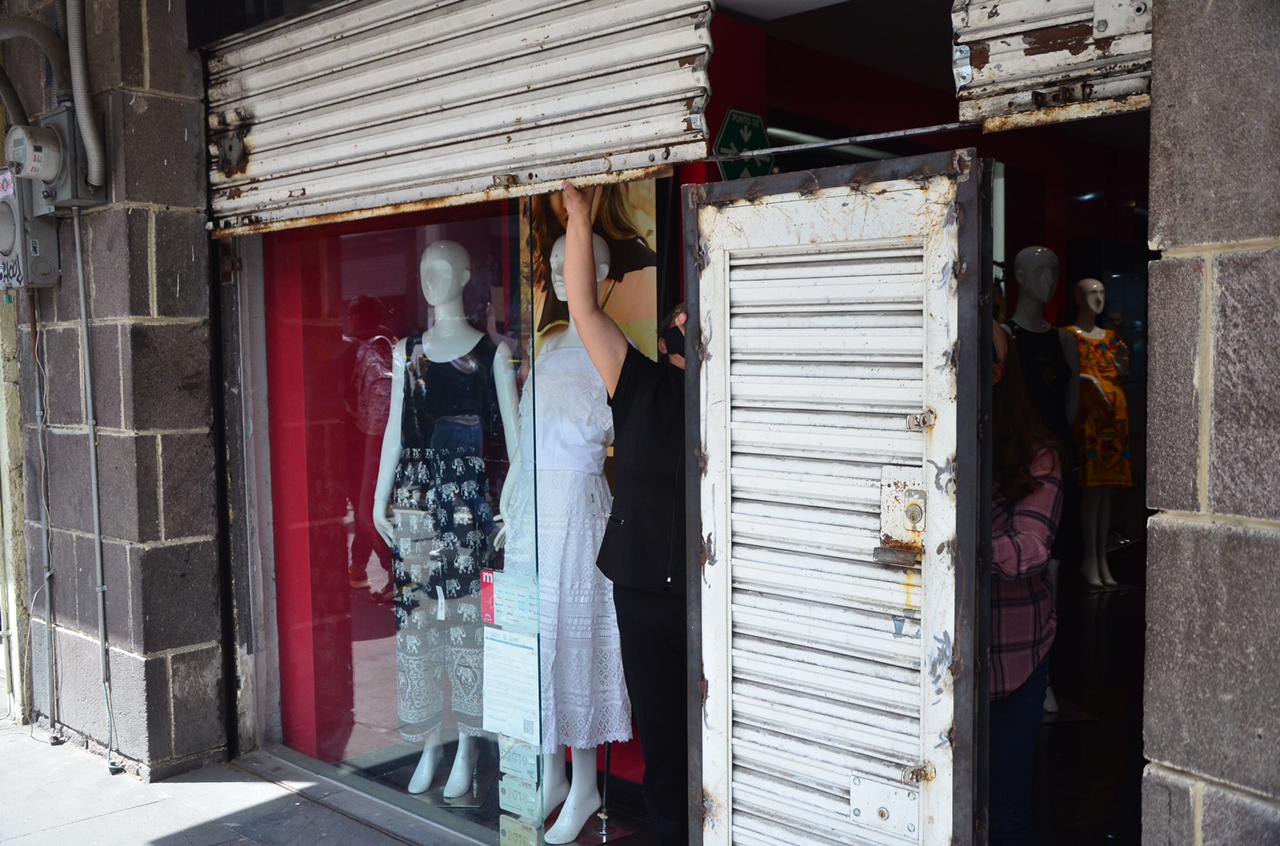 Desde las 09:00 de la mañana empezaron a subir cortinas, limpiar piso, ventanas y sanitizar cada espacio de sus negocios, pues pretenden que sea un dia normal, sin embargo empleados de torterias, tienda de ropa y celulares comentaron que estarían pendientes de las acciones que realizarán las feministas en su marcha y de observar que se pone grave el asunto, cerraron y resguardarán en el local hasta que pasara el contingente.