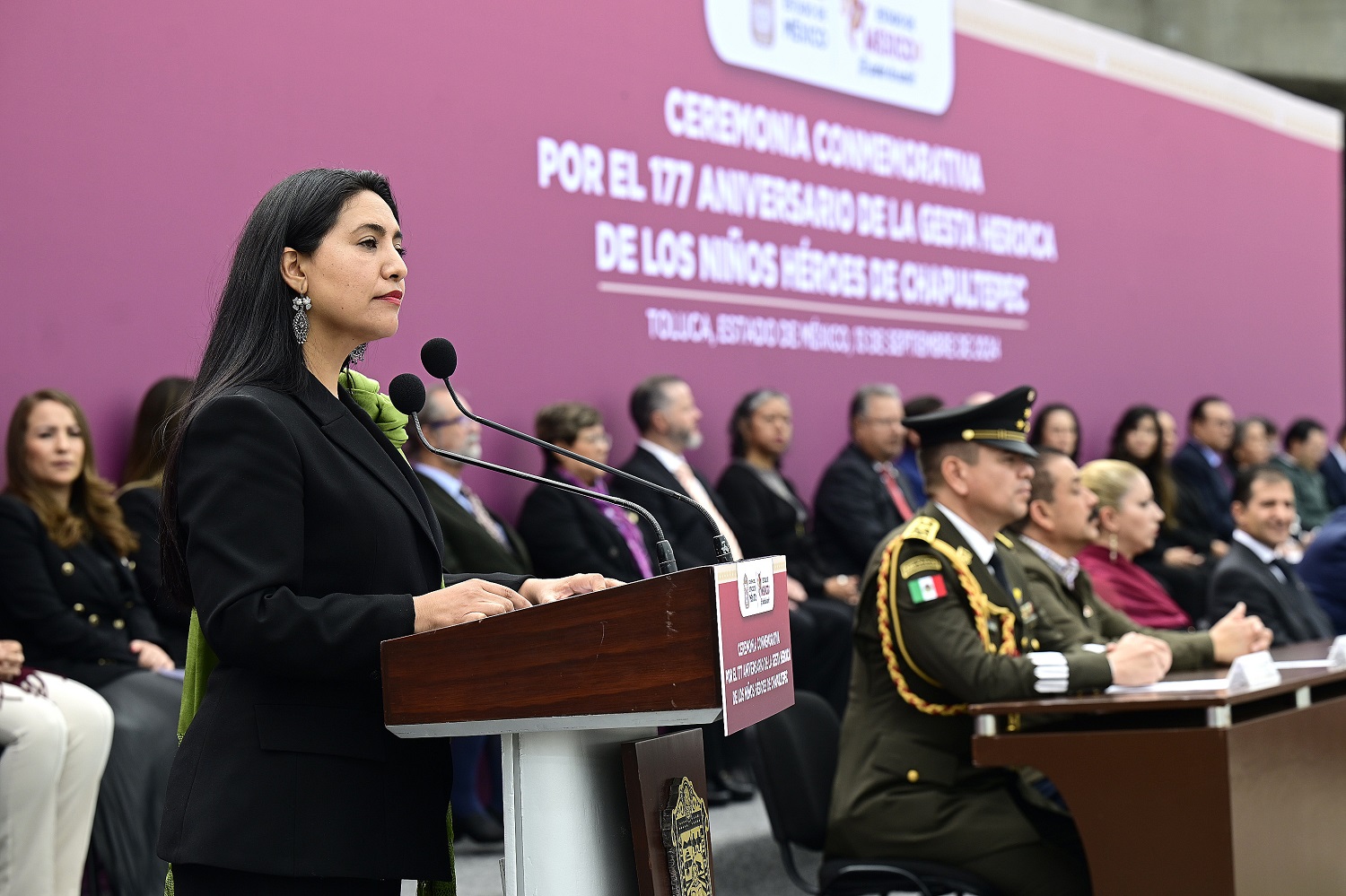 La Secretaria Nelly Carrasco agregó que este hecho histórico es un recordatorio de la identidad nacional y de unión entre el pueblo mexicano; destacó el heroísmo de los cadetes al enfrentar con valor al enemigo; en este sentido llamó a la sociedad a mantener firmes los ideales en defensa del país, siguiendo la ruta de la transformación encabezada por el Presidente de México, Andrés Manuel López Obrador y de la Maestra Delfina Gómez Álvarez, en el Estado de México.