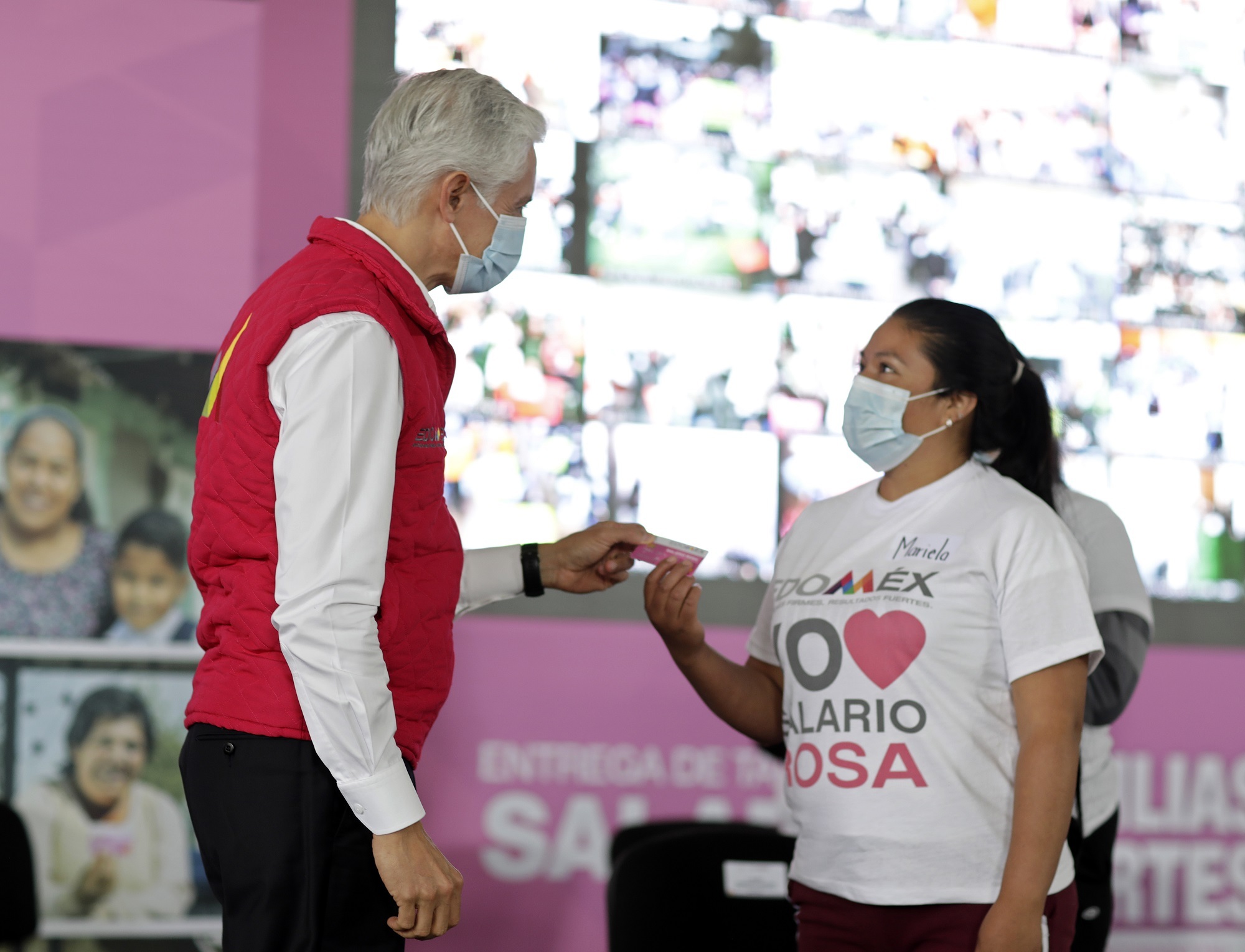 El programa Salario rosa es una estrategia social para reconocer y recompensar a las mujeres mexiquenses por el esfuerzo que realizan todos los días en el cuidado, sustento y desarrollo de sus familias.