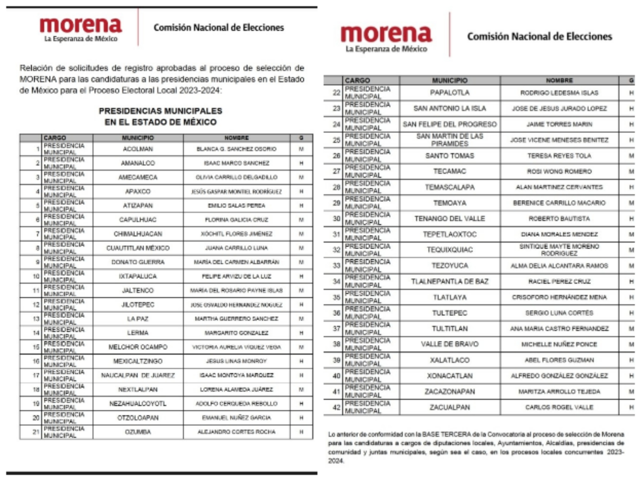 La Comisión Nacional de Elecciones de Morena dio a conocer una primera lista de solicitudes de registro aprobadas al proceso de selección de candidatos a las presidencias municipales en el Estado de México para el proceso electoral local 2023-2024.