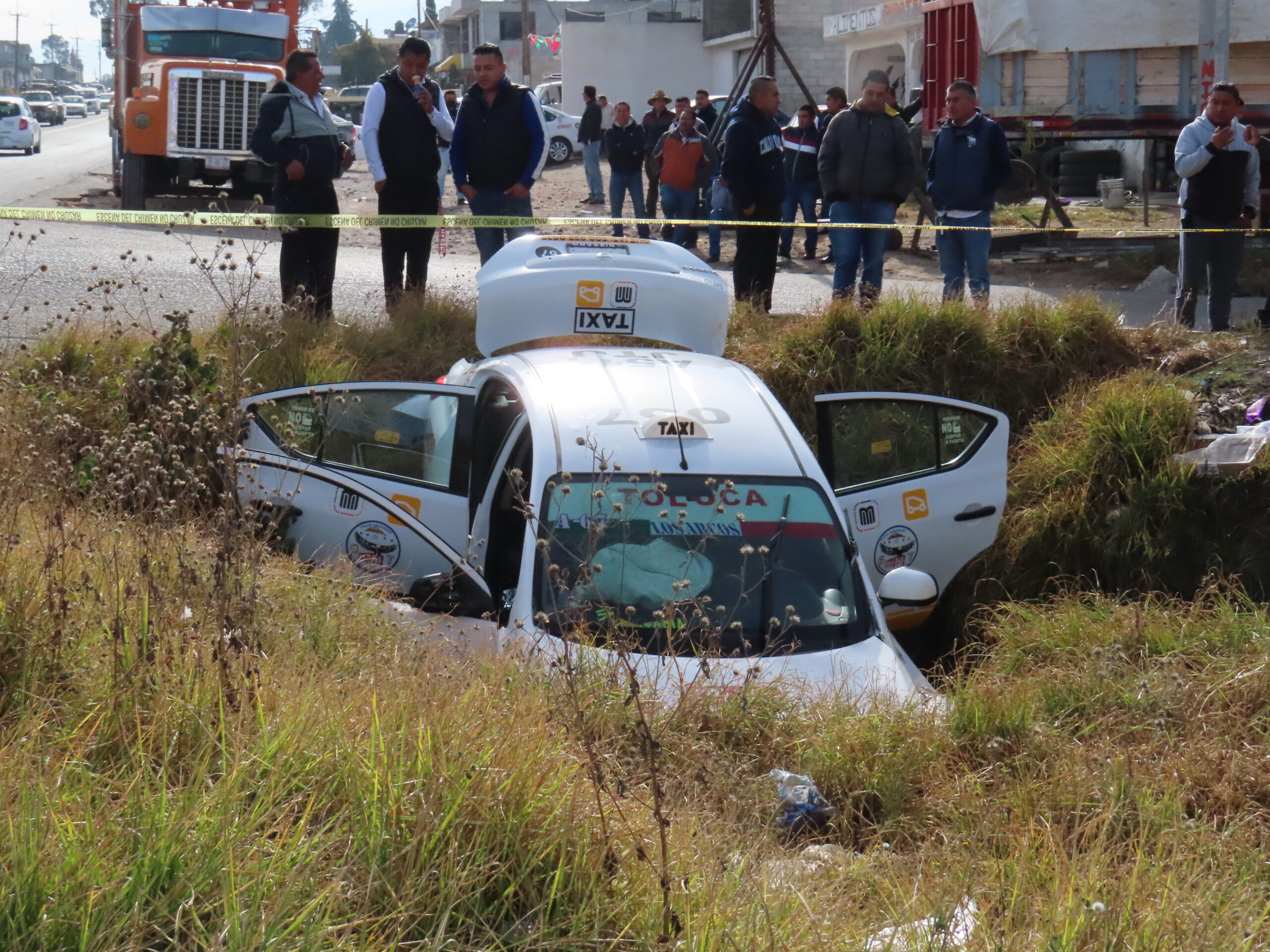 Martin quedó sin vida al interior del taxi en el que iba de pasajero, luego que chocará contra una camioneta y cayera a un canal de aguas, cuatro personas más resultaron lesionadas en Tres Barrancas en Almoloya de Juárez.