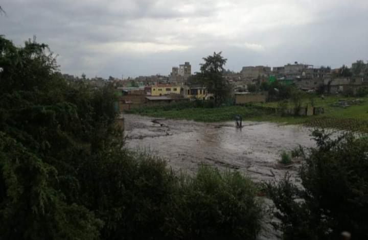 Las fuertes precipitaciones pluviales que se registraron la tarde de este lunes en el Valle de Toluca, ocasionaron el desbordamiento del río de Xinantecatl, ubicado en la comunidad San Antonio Acahualco, del municipio de Zinacantepec.