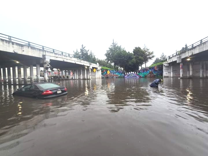 Luego del descarrilamiento del tren y las fuertes precipitaciones que se registraron la tarde de este viernes, provocó el cierre total del cruce Tollocan y Pilares, dejando severos encharcamientos y varios vehículos varados.