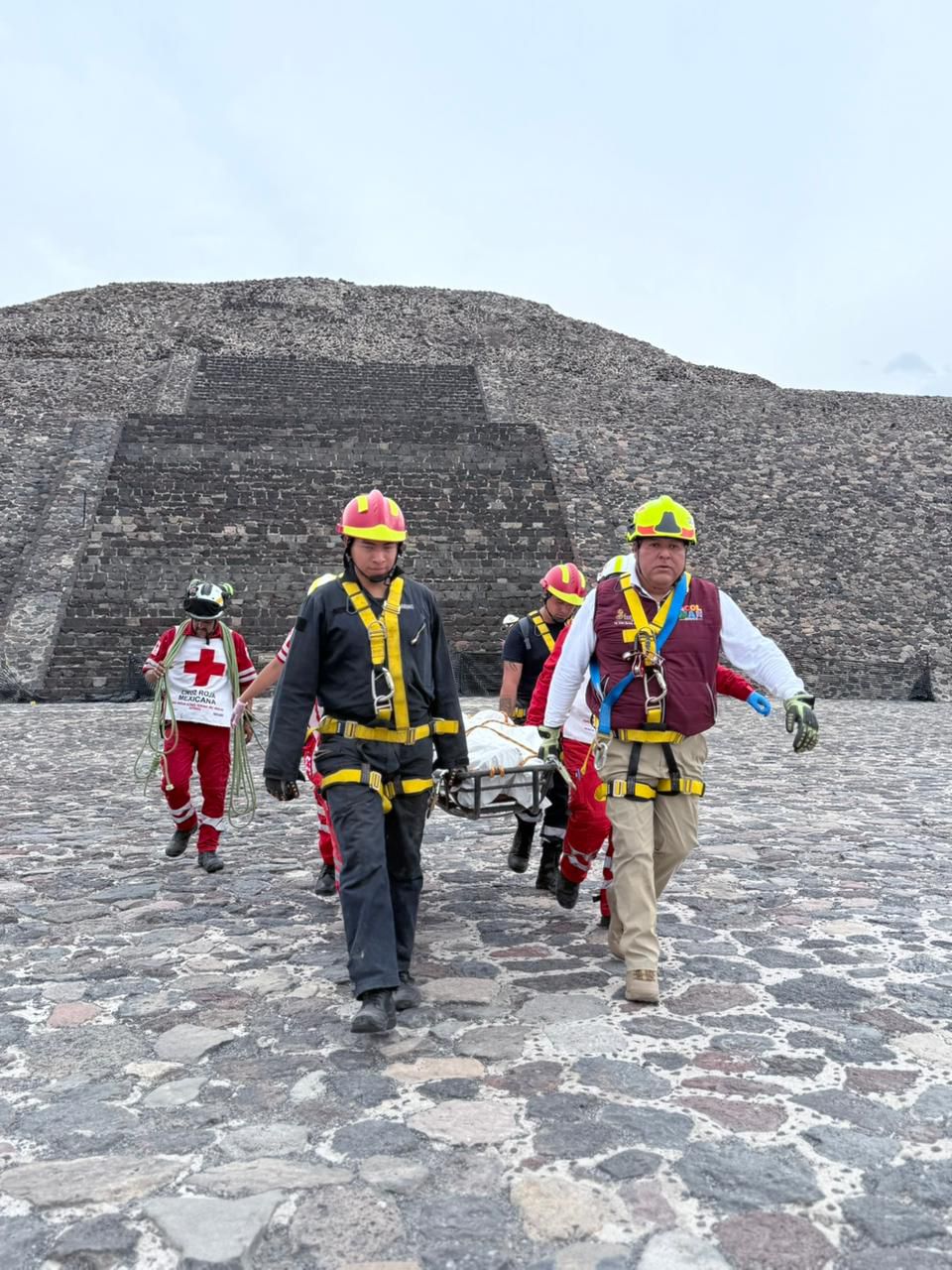 La Cruz Roja también indicó que una unidad de rescate urbano participó en el descenso de las personas que perdieron la vida en la Pirámide de la Luna, sitio donde ocurrió parte de la emergencia.