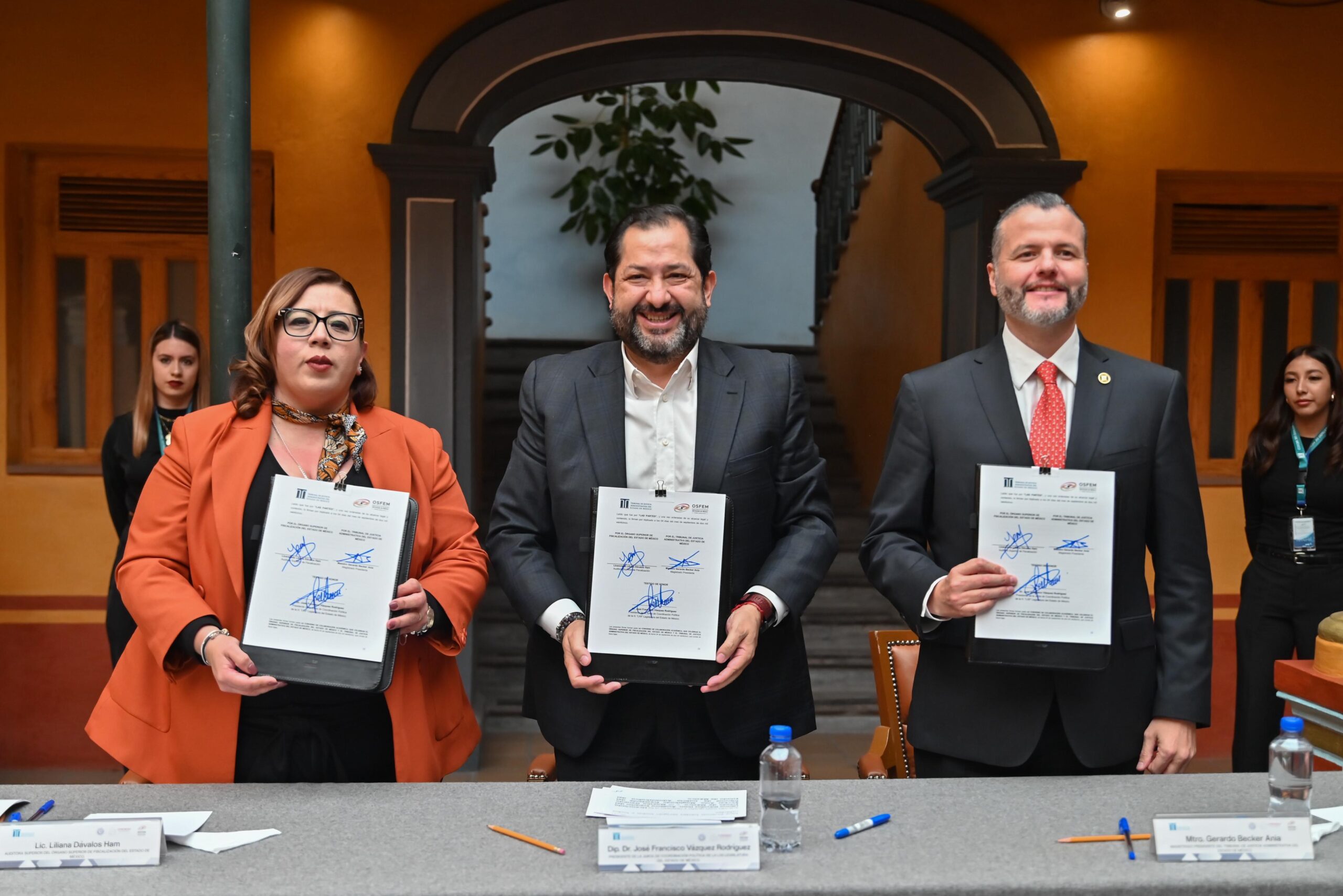 Al atestiguar la firma del convenio de colaboración académica entre el Órgano Superior de Fiscalización del Estado de México (OSFEM) y el Tribunal Superior de Justicia Administrativa del Estado de México (Trijaem), el diputado José Francisco Vázquez Rodríguez (morena), presidente de la Junta de Coordinación Política (Jucopo) de la LXII Legislatura mexiquense, señaló que el buen gobierno se construye a partir del trabajo común, el diálogo y la corresponsabilidad entre poderes y organismos.El legislador resaltó que el acuerdo, suscrito por Liliana Dávalos Ham, titular del OSFEM, y Gerardo Becker Ania, magistrado presidente del Trijaem, impulsará el intercambio de experiencias y la capacitación en áreas clave como la justicia, la responsabilidad y el derecho administrativo. Además, fortalecerá ambas instituciones y reflejará los principios fundamentales de la Cuarta Transformación: transparencia, honestidad, rendición de cuentas y cercanía con la ciudadanía.“Reconozco el liderazgo de la auditora superior y del magistrado presidente, así como el compromiso de sus equipos. Refrendo, desde la legislatura, nuestro compromiso para seguir impulsando un Estado más justo, transparente y cercano a la gente”, indicó el parlamentario.El diputado, también coordinador del Grupo Parlamentario de morena, añadió que la colaboración entre el OSFEM y el Trijaem permitirá generar conocimientos, herramientas y metodologías que fortalecerán la fiscalización, la justicia administrativa y, en general, la vida democrática del Estado de México.“Es parte de lo que la administración pública necesita, es parte de la capacitación que nuestros servidores públicos necesitan, pero, sobre todo, los resultados que necesitamos dar y que espera la ciudadanía”, puntualizó.En su participación, la auditora Liliana Dávalos agradeció el apoyo y la confianza del diputado Francisco Vázquez, pues aseguró que su respaldo ha sido clave para avanzar en temas relevantes, como el convenio de colaboración con el Trijaem. Además, consideró que el fortalecimiento académico es un deber para quienes velan por el correcto uso de los recursos públicos y por la impartición de justicia administrativa.Finalmente, Gerardo Becker refirió que, a un año de la apertura del centro educativo de la institución, se han graduado 184 estudiantes; y para la tercera generación ya están inscritas 177 personas, entre ellas personal del OSFEM. Por ello, resaltó que el acuerdo interinstitucional representa un acto de confianza en el talento humano de las y los servidores públicos, ya que se ponen a su alcance herramientas de formación en excelencia, conocimientos técnicos, valores éticos y habilidades emocionales.