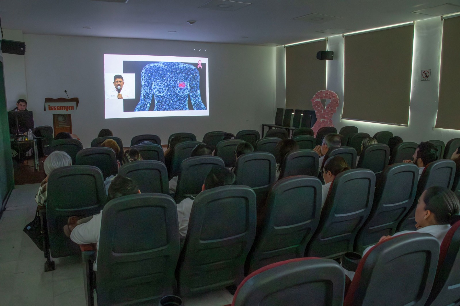 Al inaugurar el ciclo de conferencias con motivo del Día Internacional de la Lucha contra el Cáncer de Mama, Ignacio Salgado García, Director General del ISSEMYM, destacó que esta enfermedad puede superarse con un diagnóstico oportuno, atención médica adecuada y acompañamiento humano.