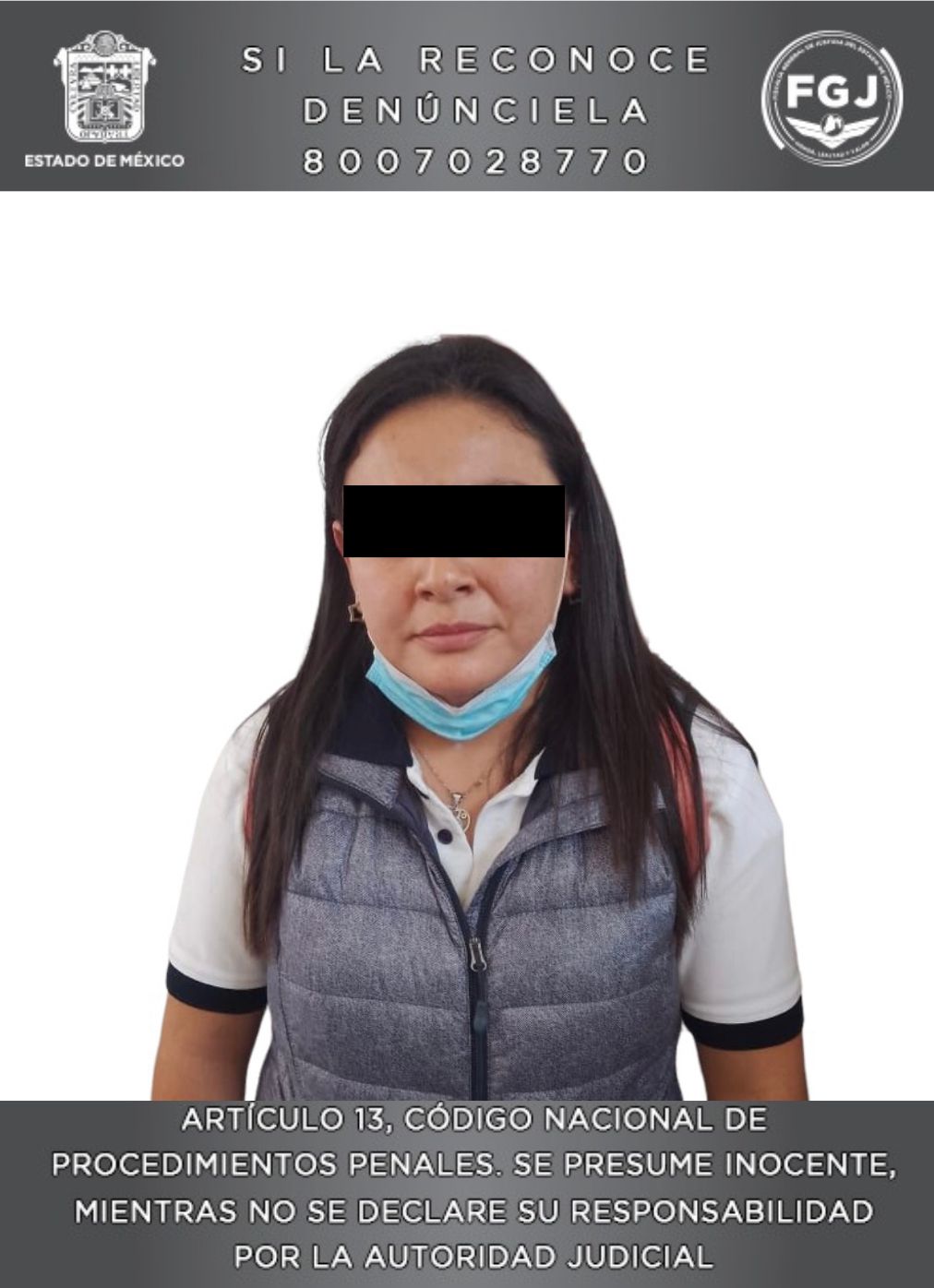 Derivado de estos hechos la FGJEM dio inicio a una investigación y recabados diversos datos de prueba, los cuales fueron aportados ante un Juez, autoridad que libró orden de aprehensión en contra de la probable implicada: mandamiento judicial que fue otorgado y cumplimentado por Policías de Investigación (PDI).
