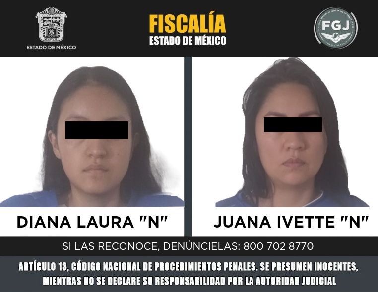 La Fiscalía General de Justicia del Estado de México informa que, como consecuencia de la detención de Diana Laura “N” y Juana Ivette “N”, dada a conocer el pasado viernes 12 de septiembre y derivado de su presunta complicidad con otro de los detenidos identificado como Alejandro “N” alias “Choko”, fueron iniciados los procesos para dar de baja a las femeninas antes señaladas.