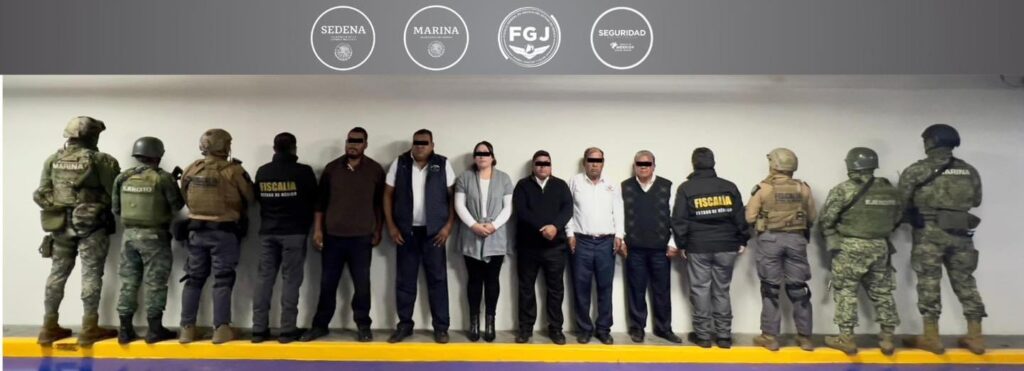 Elementos de la Fiscalía General de Justicia del Estado de México, en coordinación con la Secretaría de la Defensa Nacional (SEDENA), la Secretaría de Marina (SEMAR) y la Secretaría de Seguridad Edoméx (SSEM), cumplimentaron en el municipio de Acambay, orden de aprehensión en contra de Ana María “N”, Aarón “N” (padre), Aarón “N, N” (hijo), Abelardo “N” alias “Don Bel”, Javier Armando “N” y Roberto Carlos “N” alias “Bávaro”, por su probable intervención en actividades extorsivas en la región norte de la entidad mexiquense, a favor de un grupo delincuencial con orígenes en Michoacán.