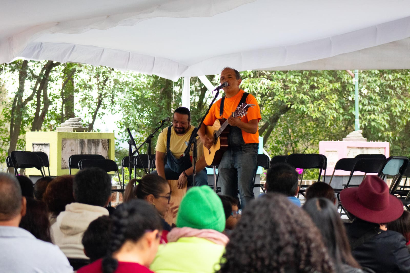 Más tarde, las familias escucharon el concierto a cargo de Cuentrova, agrupación encabezada por Isidro Delgado quien compartió canciones que hablan del acercamiento a los libros, como el caso de la niña Juana haciendo alusión a Sor Juana Inés de la Cruz; así como la que habla del poder de la imaginación que te puede llevar a cualquier lugar; y la que trata de lo maravilloso que es la mariposa monarca.