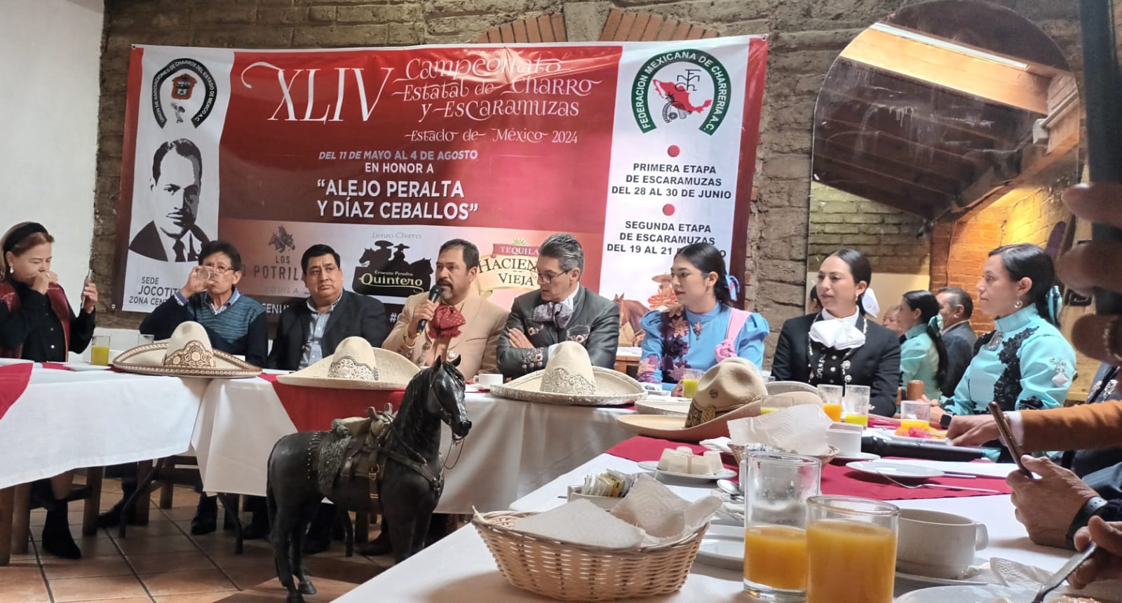 La Unión de Asociaciones de Charros del Estado de México A.C informó sobre el LXIV Campeonato Estatal de Charros y Escaramuzas 2024 y lanzó una invitación a los mexiquenses para que asistan con la familia al municipio de Jocotitlán, donde se desarrollará el magno evento.
