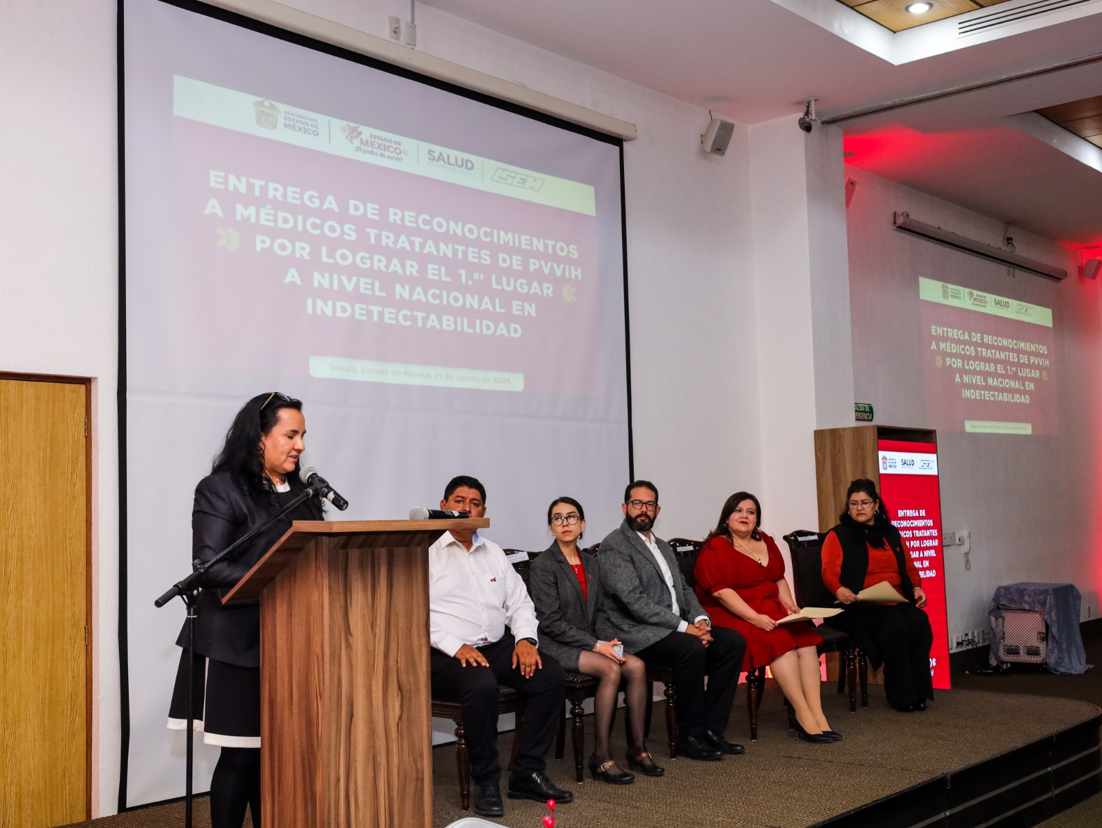 En el marco de la ceremonia de entrega de Reconocimientos a médicos tratantes de pacientes viviendo con VIH por lograr el primer lugar a nivel nacional en indetectabilidad, donde acudió en representación de la Secretaria de Salud, Macarena Montoya Olvera, agradeció a quienes hacen posible este logro, lo que pone de relieve que juntos contribuyen a construir un enfoque integral, que pone al paciente en el centro de todo lo que se hace.