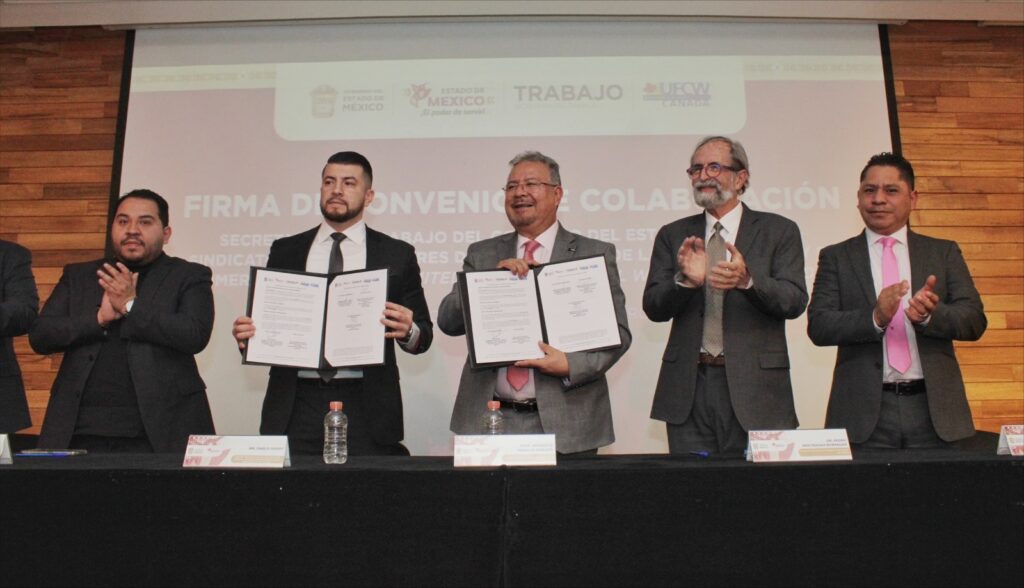 Con la finalidad de mejorar las condiciones laborales de trabajadores agrícolas mexiquenses, la Secretaría del Trabajo del Gobierno del Estado de México y el Sindicato de Trabajadores de la Industria de la Alimentación y el Comercio de Canadá (United Food Commercial Workers of Canada) firmaron un convenio de colaboración para la protección y el bienestar de quienes buscan una oportunidad laboral en ese país.
