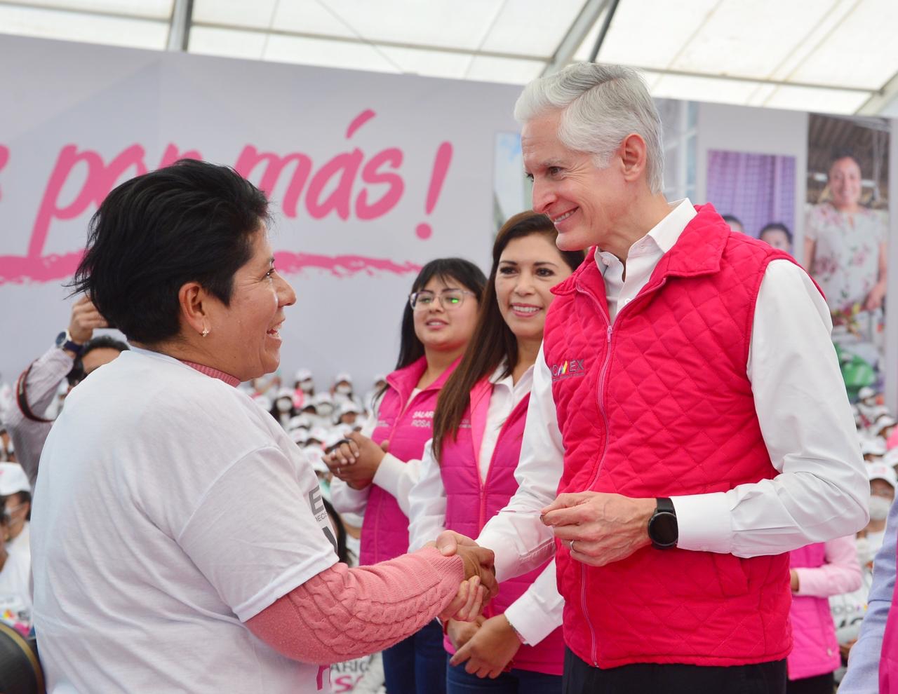 Al hacer entrega de tarjetas del programa de Salario Rosa a amas de casa de diferentes municipios mexiquenses, el Gobernador del Estado de México, Alfredo Del Mazo Maza, señaló que este programa nació para reconocer y agradecer el trabajo diario que realizan para sacar adelante a sus familias y para brindarles un ingreso que pueden invertir en lo que ellas deseen. “Muchas gracias a todas las amas de casa, por lo que hacen por la familia, por ese esfuerzo, y por eso nació el programa, primero para reconocer, para reconocer y agradecer ese esfuerzo, y segundo, para que pudiéramos apoyar a las amas de casa con un ingreso para la familia, para que ustedes lo inviertan en lo que ustedes quieran”, afirmó.En Tlalnepantla, en donde estuvo acompañado de la Secretaria de Desarrollo Social (Sedesem), Brenda Alvarado Sánchez y del Presidente municipal, Marco Antonio Rodríguez Hurtado, Del Mazo Maza dio a conocer que a más de cinco años de que este programa fuera creado, ya son más de 600 mil mujeres las que se han beneficiado y han logrado mejorar su economía. “Muchas felicidades a todas las beneficiadas que hoy se suman, son muchas las que hoy se suman al programa, aquí son cerca de 8 mil que se están sumando por primera vez al Salario rosa y que de aquí para delante se convierten en beneficiarias, y se suman a las más de 600 mil que tenemos de los 125 municipios del Estado de México que reciben su Salario rosa, y que le sirve muchísimo para apoyar a la familia y para invertirlo en lo que ustedes necesitan”, informó.El titular del Ejecutivo estatal señaló que las amas de casa son el pilar de las hogares, porque cuando algún integrante de sus familias se les ofrece algo, ellas están disponibles para ayudarlos, entregándose con mucho amor y dedicación.Detalló que el Salario rosa es el programa más importante que tiene el Gobierno del Estado para apoyar a las mujeres, el cual nació para reconocerlas porque son ellas quienes hacen que las familias salgan adelante.“Me da mucho gusto que estemos iniciando el año y que estemos iniciando estas semanas retomando el programa más importante que tenemos en el Gobierno del Estado de México, que es el Salario rosa, el programa más importante para apoyar a las mujeres, a las amas de casa, un programa que nació hace ya cinco años, un poco más de cinco años, para apoyar a las amas de casa, pero primero que nada para reconocer el trabajo que hacen las amas de casa”, refirió.El Gobernador mexiquense afirmó que el Salario rosa está en las mejores manos, porque cuando un ingreso llega, las amas de casa lo invierten siempre pensando en sus familias, ya sea en educación para sus hijos, alimentación, atender algún problema de salud o para emprender algún proyecto que les ayude a generar más ingresos. El Gobernador mexiquense llamó a las mujeres que este día recibieron su tarjeta de Salario rosa, a invitar a sus amigas y vecinas a sumarse al programa, el cual ya pudieron constatar que es una realidad, además de asegurar que, de ahora en adelante, lo recibirán de manera constante. En su oportunidad, la titular de la Sedesem, Brenda Alvarado Sánchez, destacó que el programa del Salario rosa constituye un reconocimiento al esfuerzo diario que realizan las amas de casa mexiquenses en el cuidado de su familia, un programa que les reconoce, pero además les ayuda a fortalecer su economía al permitirles iniciar algún negocio.Dijo que según el Instituto Nacional de Estadística Geografía e Informática (INEGI), las mujeres contribuyen a través de su esfuerzo diario con al 28 por ciento del Producto Interno Bruto (PIB) nacional.En este sentido, agradeció al Gobernador la sensibilidad para atender y apoyar a las mujeres trabajadoras, pues, dijo, “donde hay mujeres fuertes hay familias fuertes”. Finamente, detalló que en la administración mexiquense siete de cada 10 pesos del presupuesto estatal se destinan a programas sociales, de los cuales, seis de cada 10 están dirigidos a mujeres.Las mujeres que este día recibieron su tarjeta del Salario rosa son originarias de los municipios de Coacalco de Berriozábal, Cuautitlán, Tultitlán, Tultepec, Coyotepec, Huixquilucan, Isidro Fabela, Jaltenco, Jilotzingo, Tonanitla, Melchor Ocampo, Naucalpan de Juárez, Nextlalpan, Teoloyucan, Tepotzotlán y Tlalnepantla de Baz.