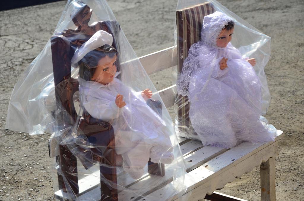 “Nuestros clientes son gente seria o que por lo menos no juega con la pandemia de COVID-19 que estamos viviendo, solo acuden a solicitar el ropón tradicional para vestir al santo y eso de colocarles cubrebocas u otro tipo de vestimenta no les agrada, dicen que es una falta de respeto”.