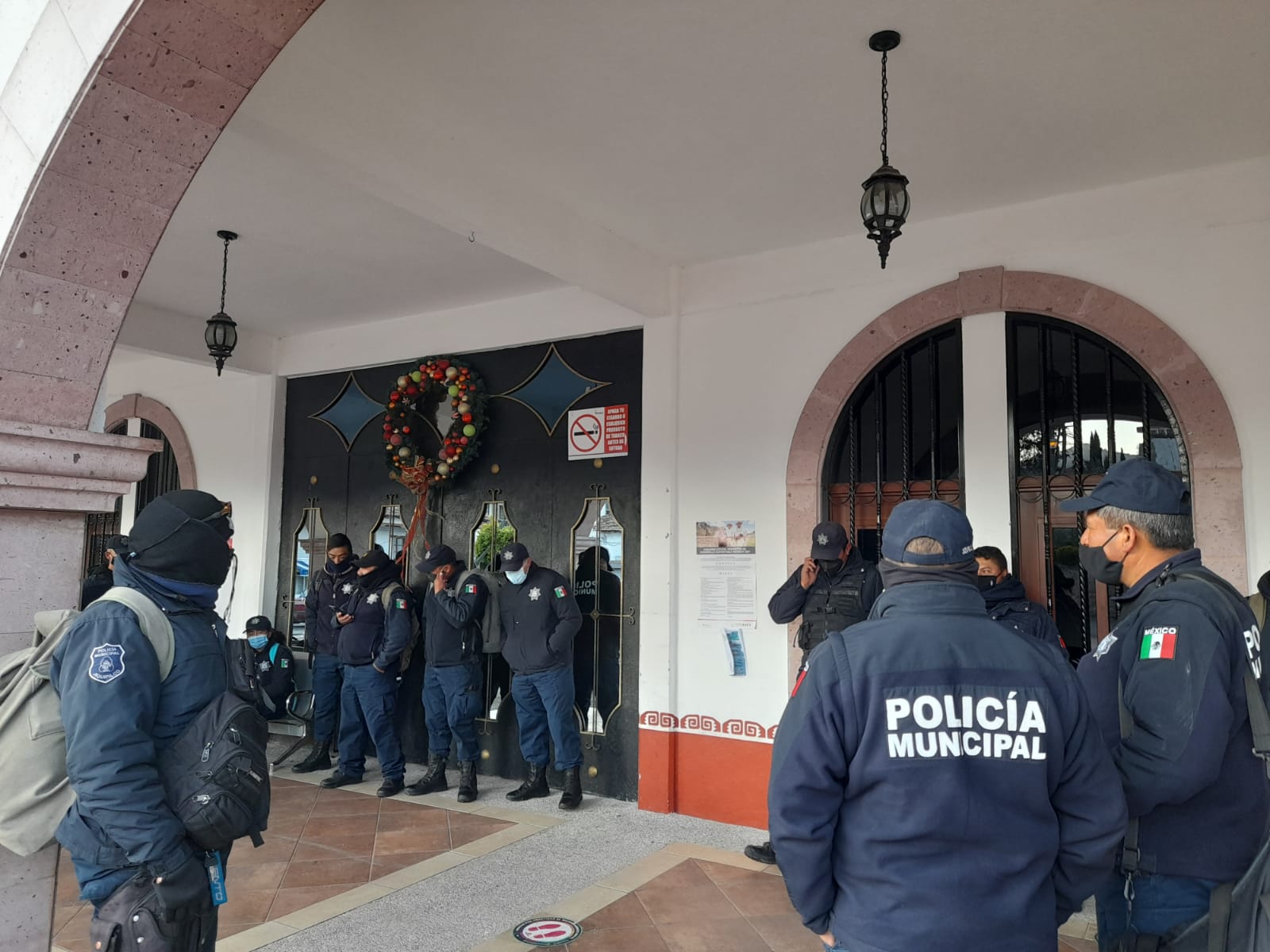 Policías del municipio de Jiquipilco tomaron las instalaciones del palacio municipal a fin de que las autoridades resuelvan su demanda que es el pago de la quincena, pues aseguran que viven al día y hasta este martes no habían recibido el pago correspondiente.