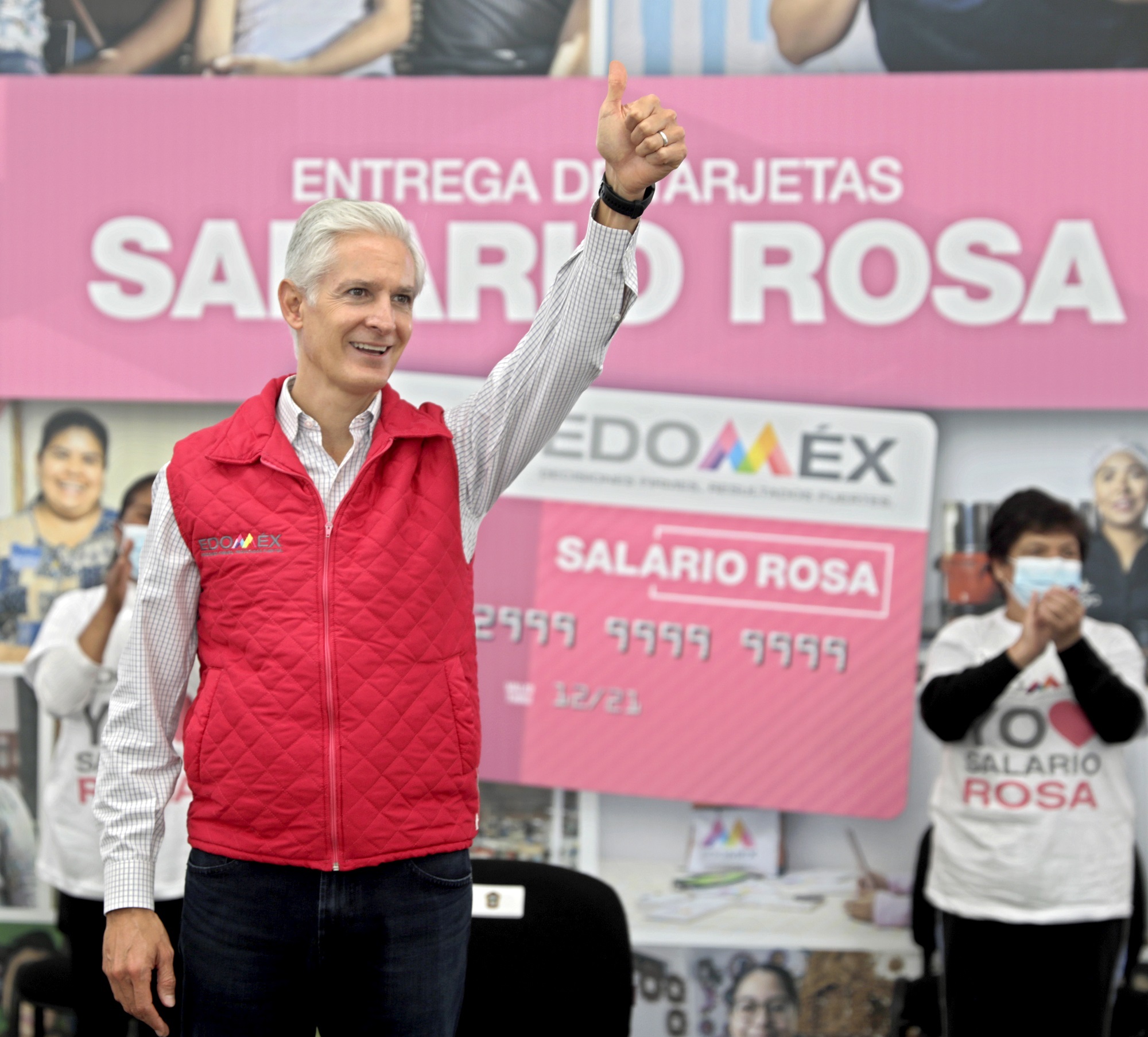 El Gobernador Alfredo Del Mazo Maza señaló que en el actual contexto de la pandemia por COVID-19, el Salario rosa es un programa útil que fortalece la economía de las familias del Edoméx, pues es un programa permanente con el que cuentan las amas de casa de la entidad.