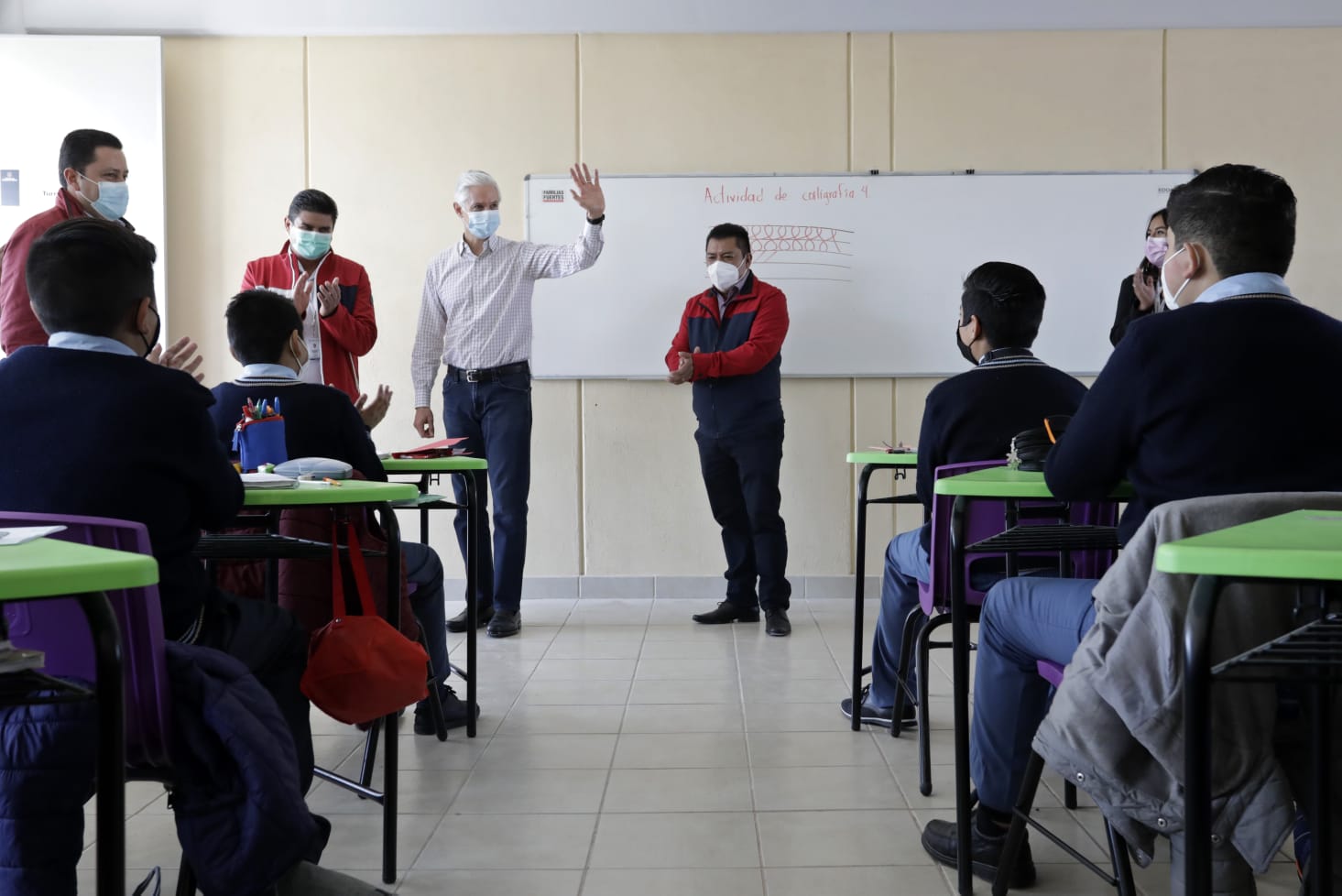 Del Mazo Maza también informó que el Gobierno del Estado, en coordinación con el Gobierno federal, impulsa la aplicación de la vacuna de refuerzo contra el COVID-19 a todos los maestros y maestras del estado, con la finalidad de que desarrollen su función en el aula, con seguridad y tranquilidad.