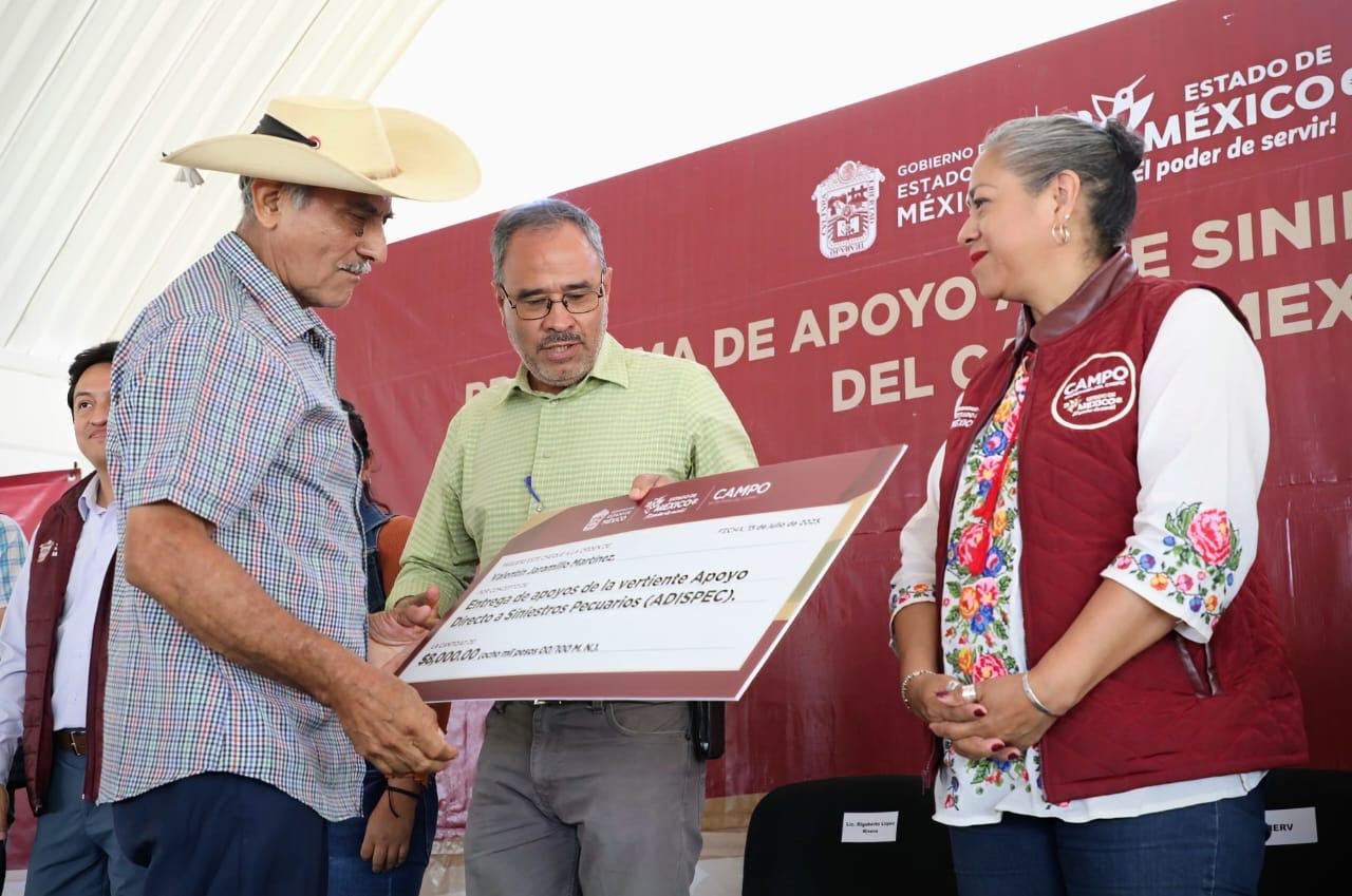A un año de la operación del Programa de Atención a Siniestros Agroclimáticos (PASACME), el Gobierno del Estado de México ha destinado más de 15 millones de pesos para respaldar a dos mil 600 productores del campo en apoyo para recuperar cuatro mil hectáreas de cultivo afectados por fenómenos climáticos como heladas, inundaciones y sequía.Los apoyos económicos, de hasta 12 mil pesos por agricultor, se otorgan de forma directa sin recurrir a intermediarios ni a esquemas de aseguradoras privadas, lo que ha permitido una respuesta más ágil en 67 municipios mexiquenses. El programa contempla un pago de cuatro mil pesos por hectárea siniestrada, con un límite de tres hectáreas por persona.Como complemento, la Secretaría del Campo opera el Programa Apoyos Directos a Siniestros Pecuarios (ADISPEC), el cual otorga recursos a quienes han perdido ganado por causas como enfermedades, partos difíciles o accidentes.En una de las entregas recientes, productores de Tejupilco, Luvianos y San Simón de Guerrero recibieron más de 550 mil pesos a través de ambos programas. De ese monto, 120 mil pesos fueron para 15 ganaderos beneficiarios del ADISPEC, mientras que 438 mil pesos se canalizaron a 93 agricultores afectados por lluvias intensas.Durante su gira por la región, María Eugenia Rojano Valdés, Secretaria del Campo, también supervisó proyectos apoyados por el Programa Integral Pecuario (PROIPEC), que impulsa la permanencia de las familias rurales mediante incentivos de hasta 50 mil pesos para iniciativas individuales y 180 mil para colectivas, destinados a mejorar e incrementar la capacidad productiva del sector pecuario.Con estos esquemas, el Gobierno del Estado de México reafirma su compromiso con la protección y recuperación del campo mexiquense frente a los efectos del cambio climático y las contingencias agropecuarias.