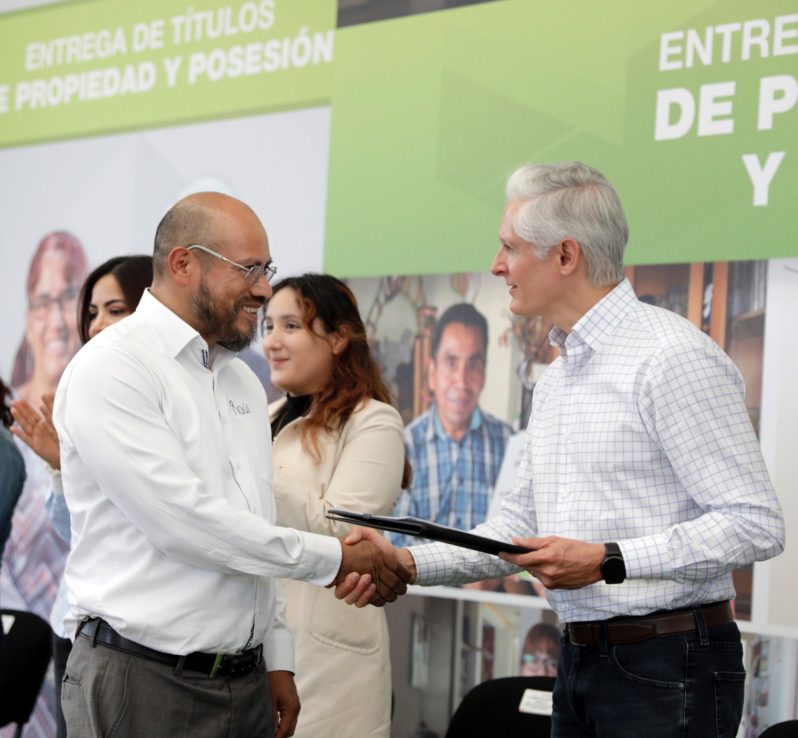 Asimismo, el Gobernador puntualizó que durante su administración se han entregado más de 48 mil títulos de propiedad en todas las regiones del Edoméx, que representan 48 millones de metros cuadrados de extensión, y precisó que de esta cantidad la mitad fueron recibidos por mujeres.