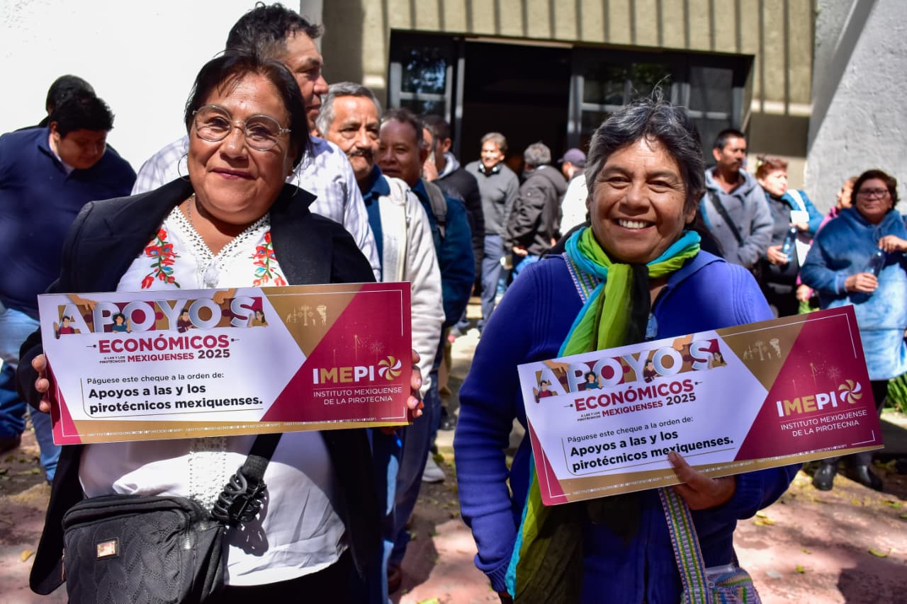Para mejorar las medidas de prevención de artesanas y artesanos de pirotecnia en el Estado de México, el Gobierno de la Maestra Delfina Gómez, a través de la Secretaría General de Gobierno y el Instituto Mexiquense de la Pirotecnia (Imepi), entregaron apoyos económicos a 44 integrantes de este sector.
